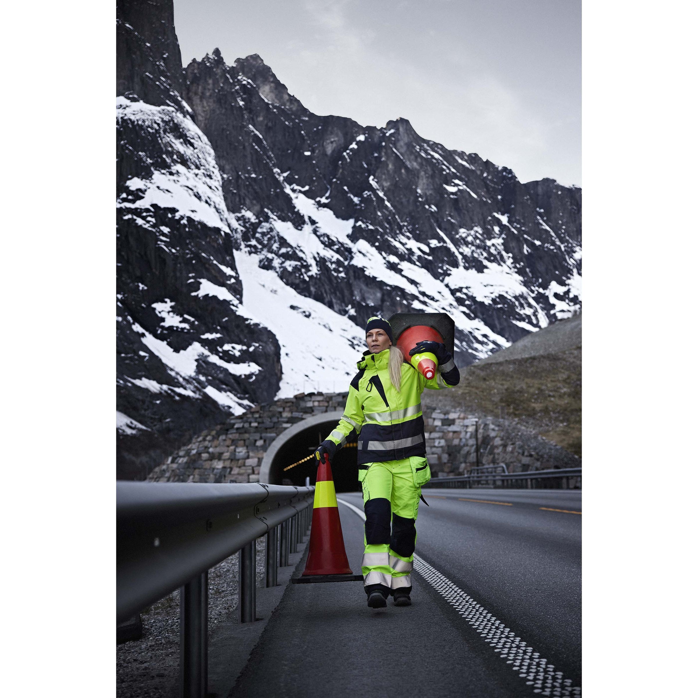 Shell jacket in a women’s cut, Class 2 hi-vis, keeping you visible when you need it most. The jacket is wind and waterproof with taped seams, and the hood is detachable and adapted for helmets and ear defenders. Two-way zip at the front and ventilation in the back. Also available in a men’s model 4435. 0