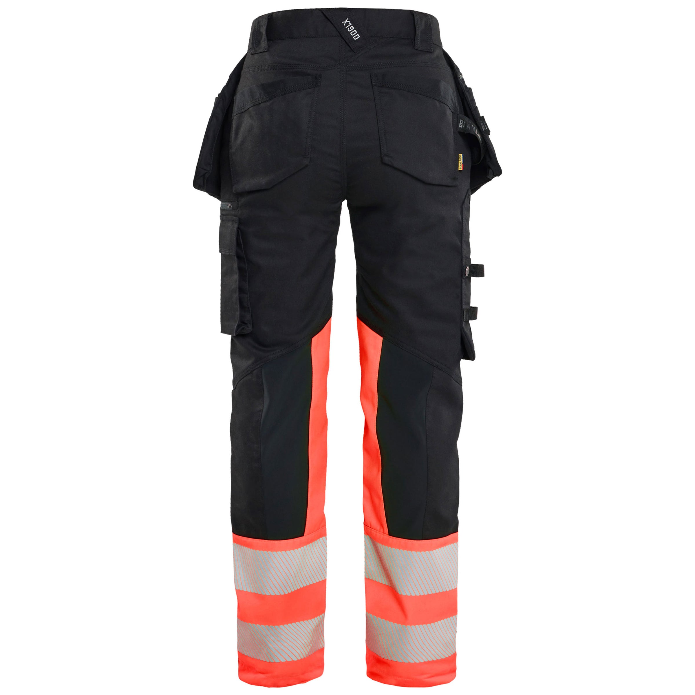 Blaklader 7030 Black/Red Hi-Vis Women's Trousers Stretch With Holster Pockets