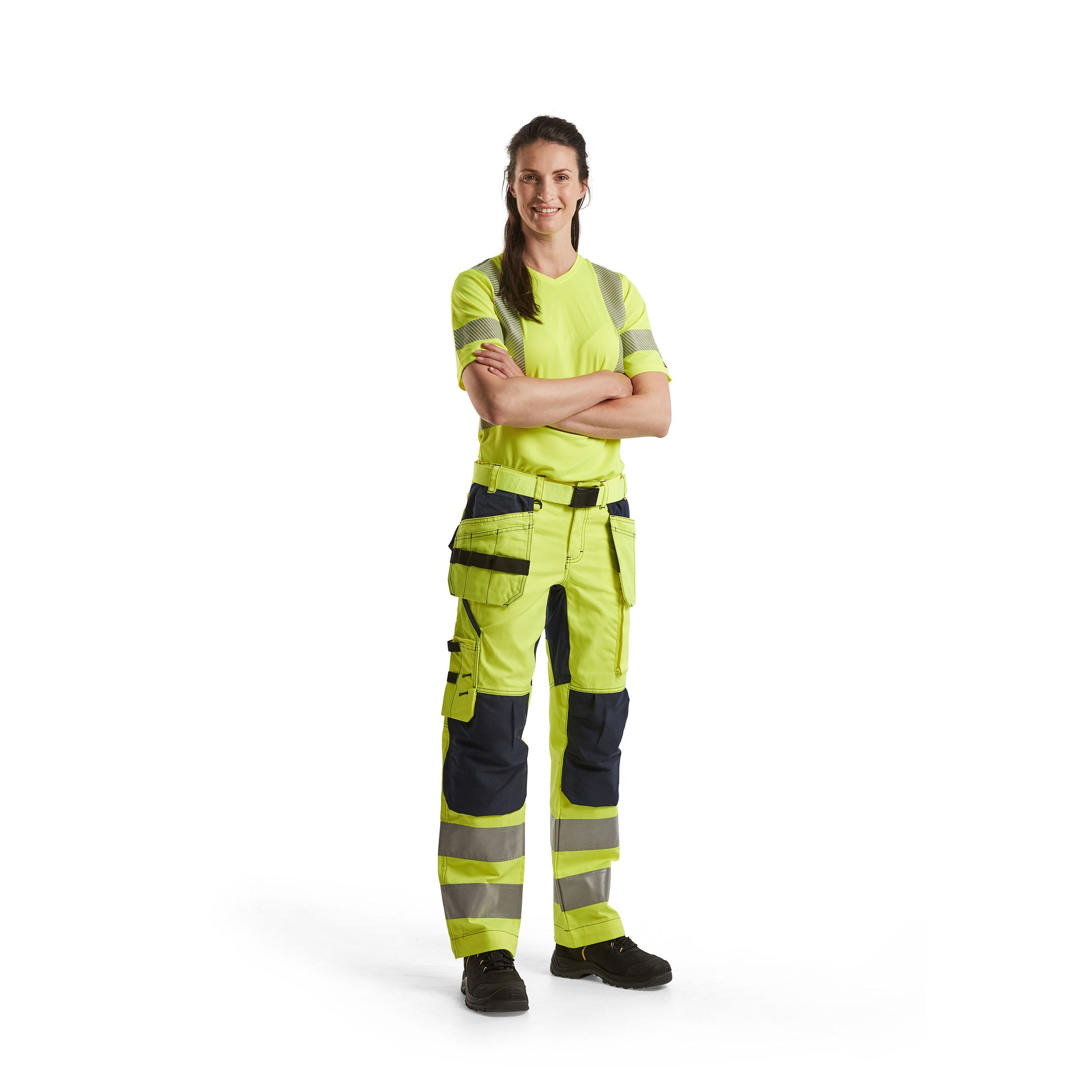 Blaklader 7163 Hi-Vis Yellow/Navy Blue Women's Trousers With Stretch With Holster Pockets