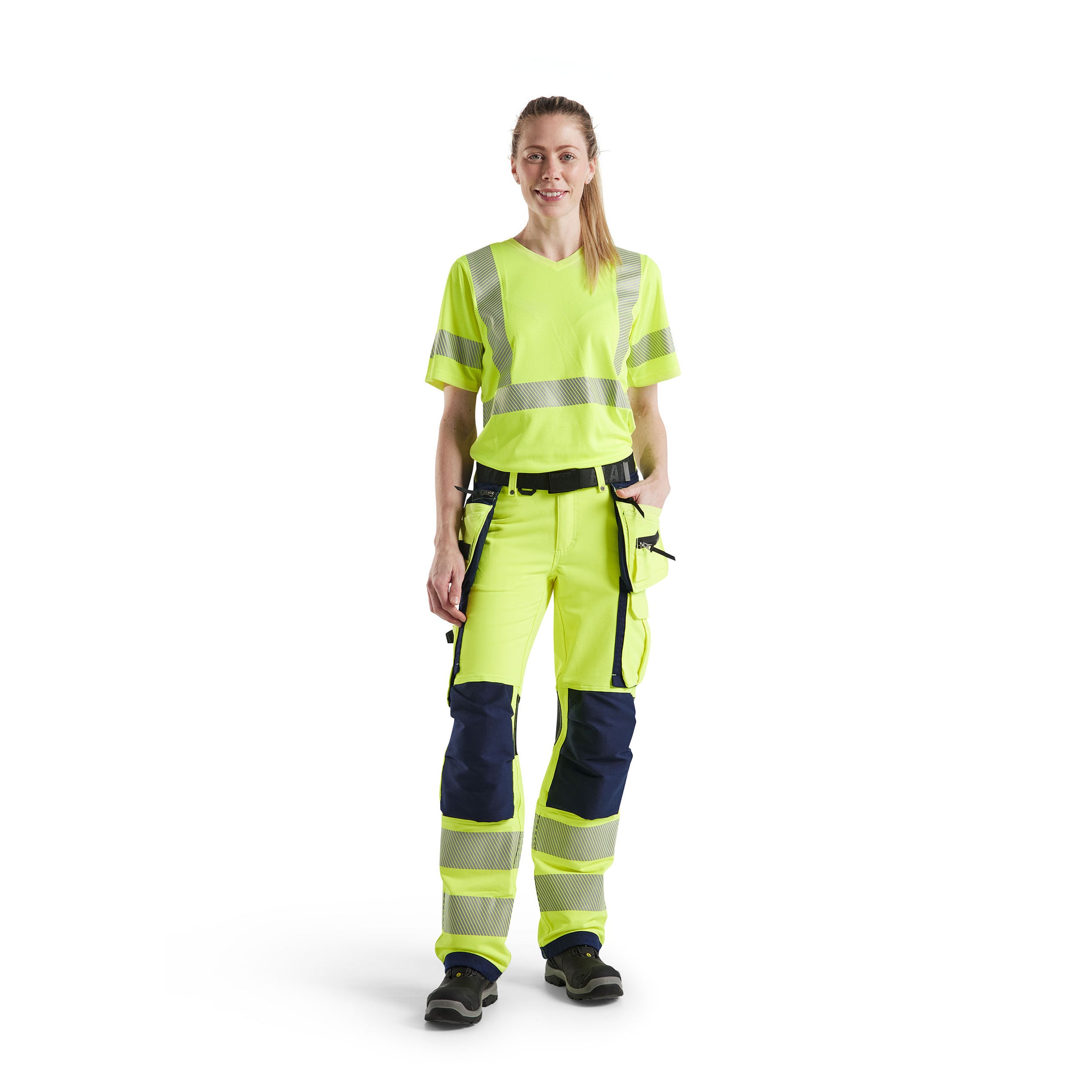 Blaklader 7197 Hi-Vis Yellow/Navy Blue Women's Trousers With 4-Way-Stretch With Holster Pockets