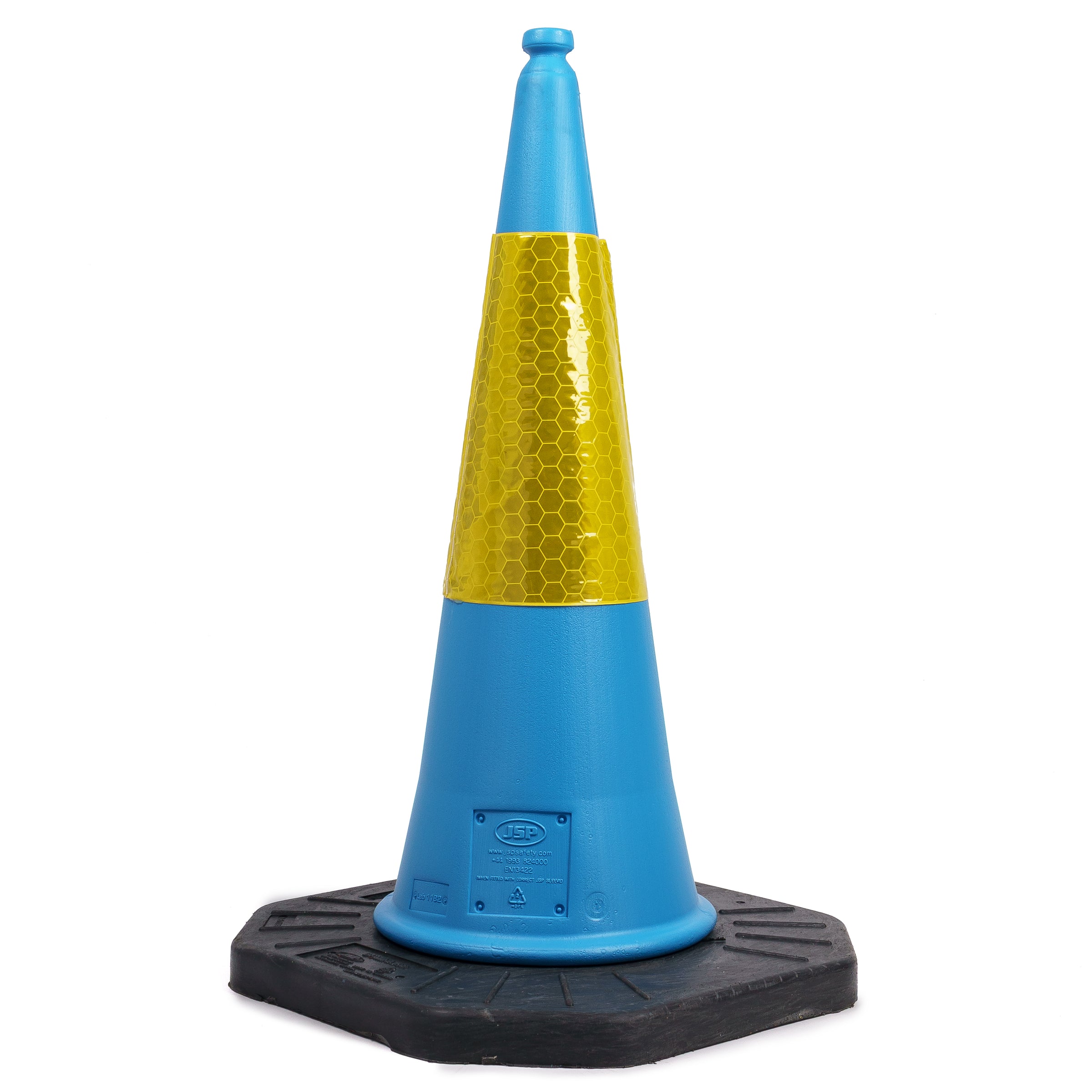 Blue Danger Overhead Cables Traffic Cone With Yellow Sleeve 1000mm