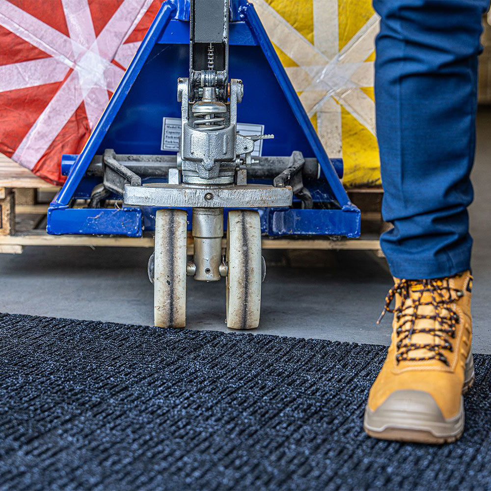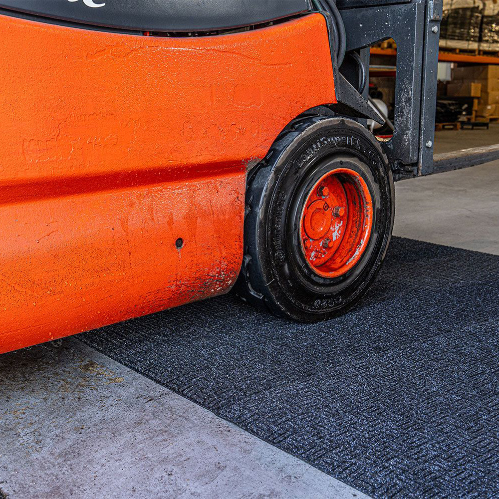 The Blue Diamond Forklift Mat is a hard-wearing forklift entrance mat perfect for use inside busy warehouse doorways. It can quickly reduce the amount of water and dirt that enters the building from forklift wheels.