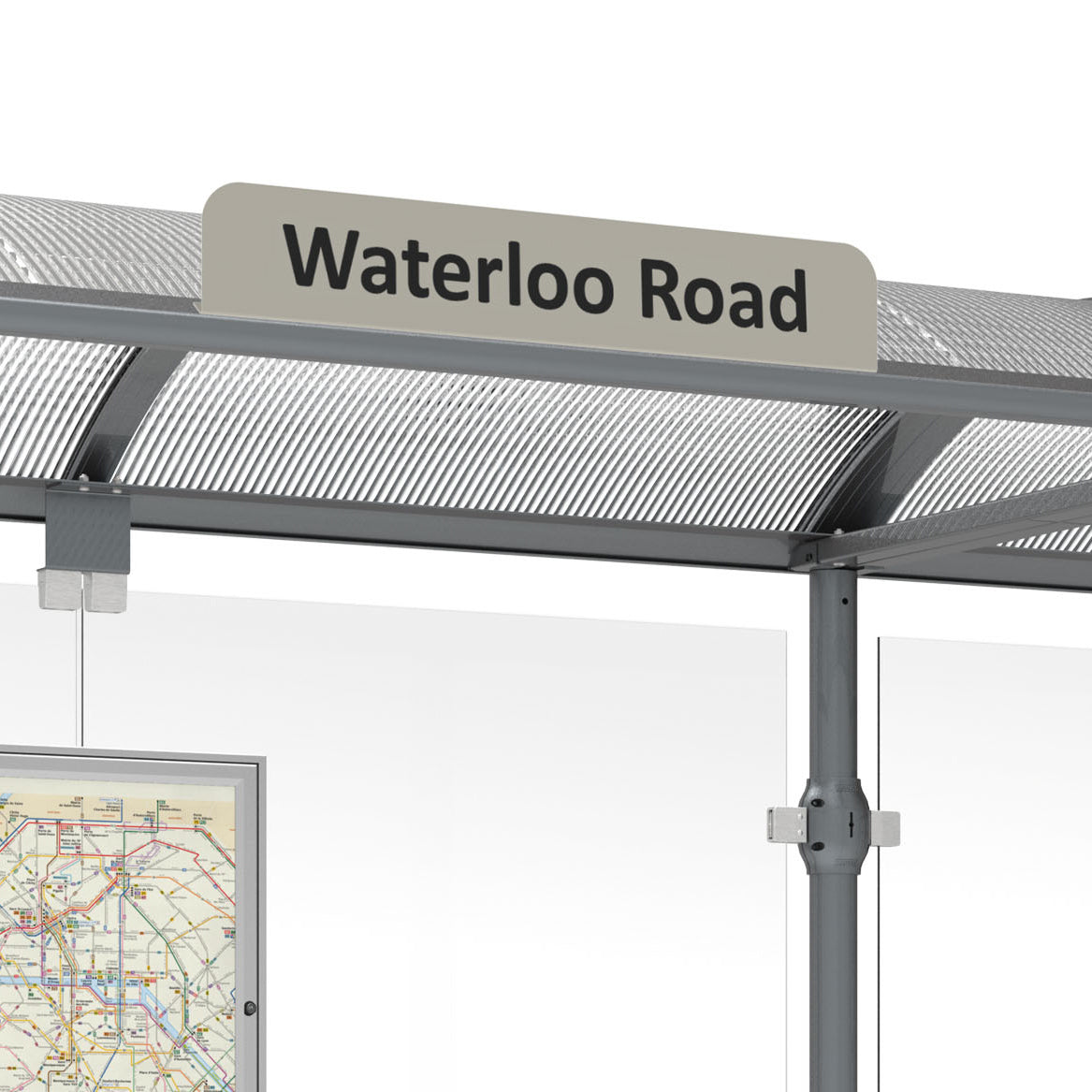 The Procity Voute bus shelter doesn’t come with a name sign to allow it to be adapted for other uses. Use this sign to transform your Voute shelter into a bus stop shelter!
