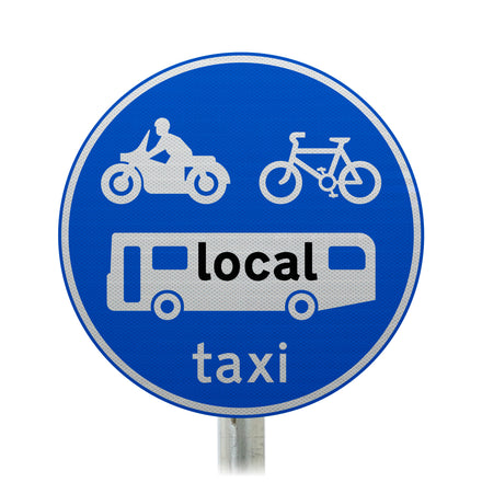 Sign diagram number 953B states which types of vehicles are allowed access to the road ahead. This particular variant allows Buses, Cycles, Solo Motorcycles and Taxis only. These signs can be used for a wide range of reasons including relieving congestion, pollution and improving public safety. Where taxis should not use the road, "Buses, Push Bikes and Motorbikes Only" (953A) would be more appropriate.