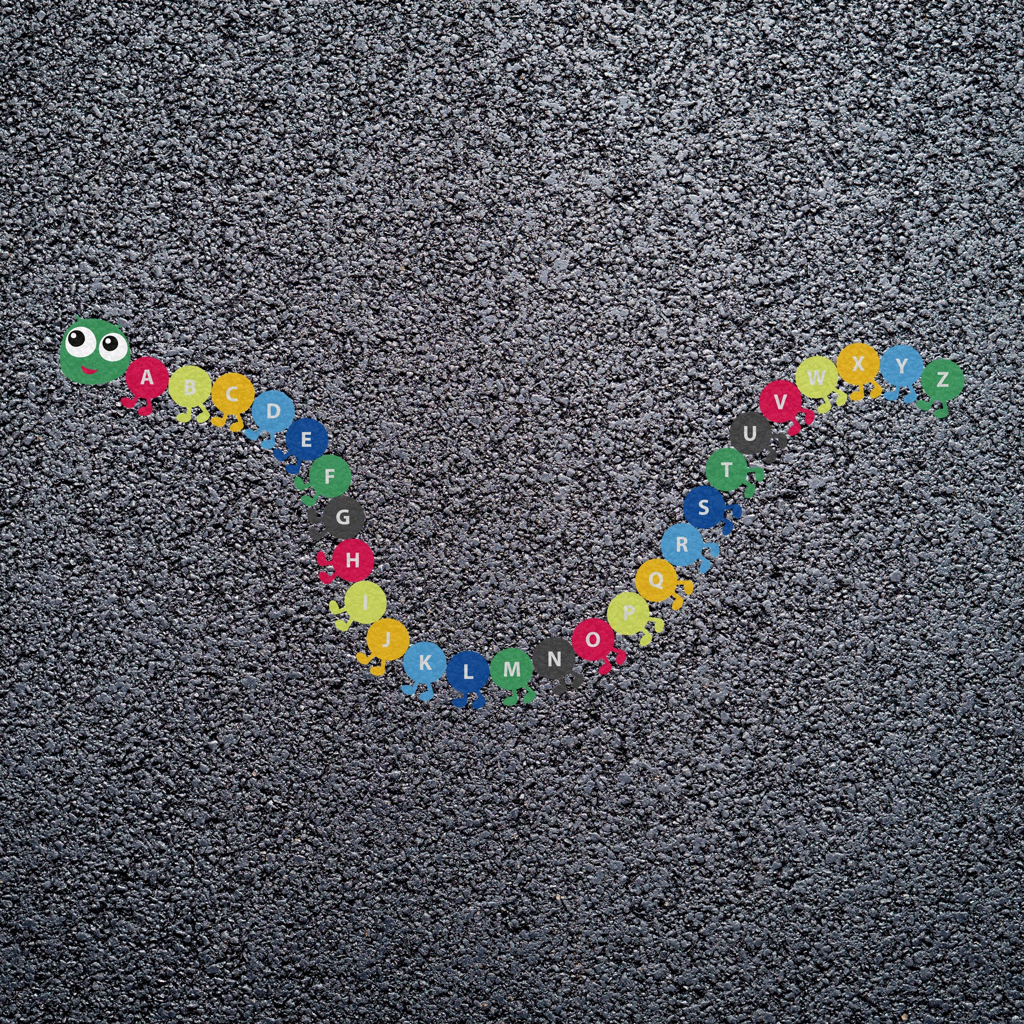 This A-Z caterpillar playground marking is a great way to encourage students to learn the alphabet without them even realising it. This is the larger of two caterpillar playground markings that we supply, the smaller sibling of this marking is a number caterpillar marking.