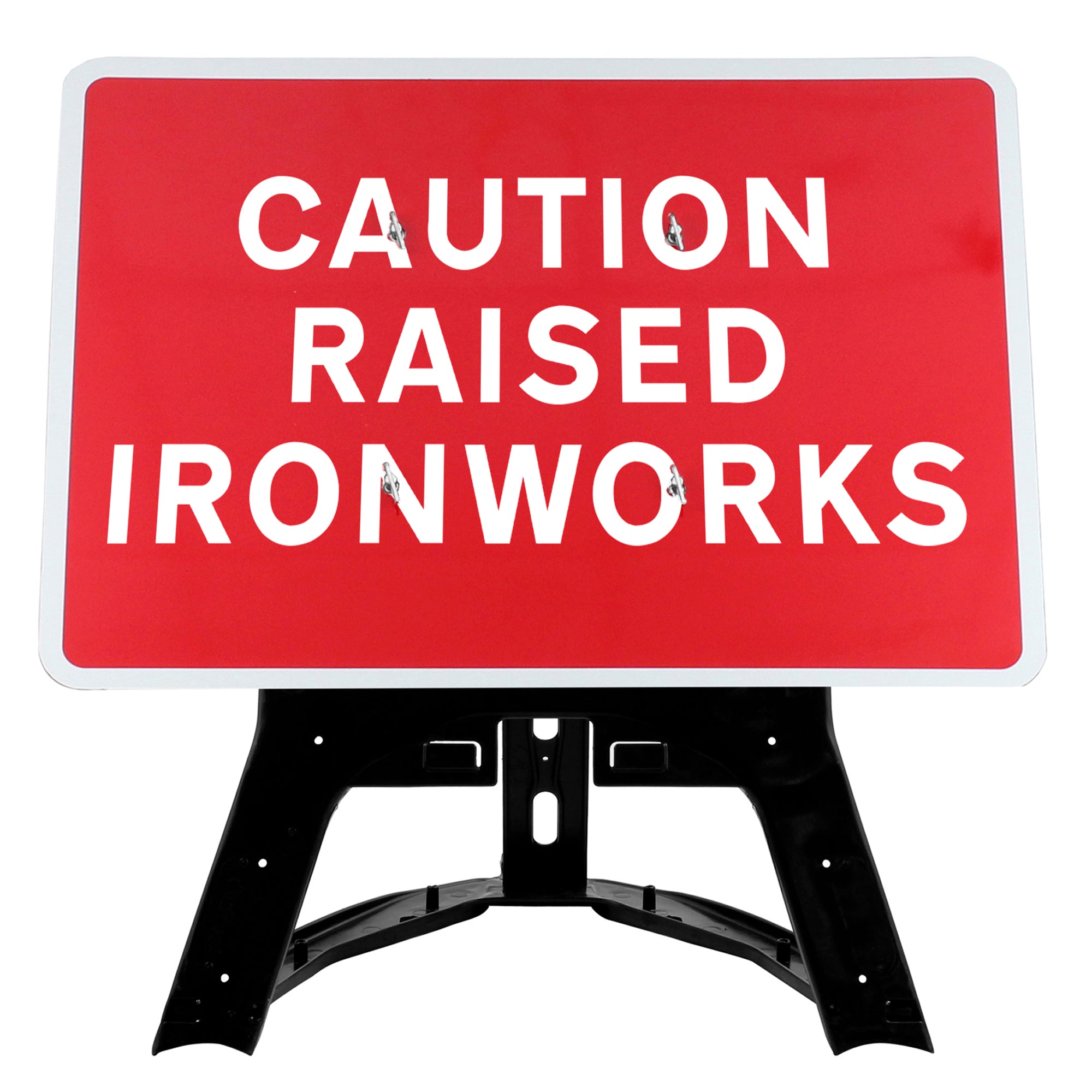 This Caution Raised Ironworks QuickFit EnduraSign informs drivers and other road users that drain covers and access covers may currently be proud of the surface of the road. This is important especially for cyclists who could if not forwarned hit a cover and be thrown off their cycle.