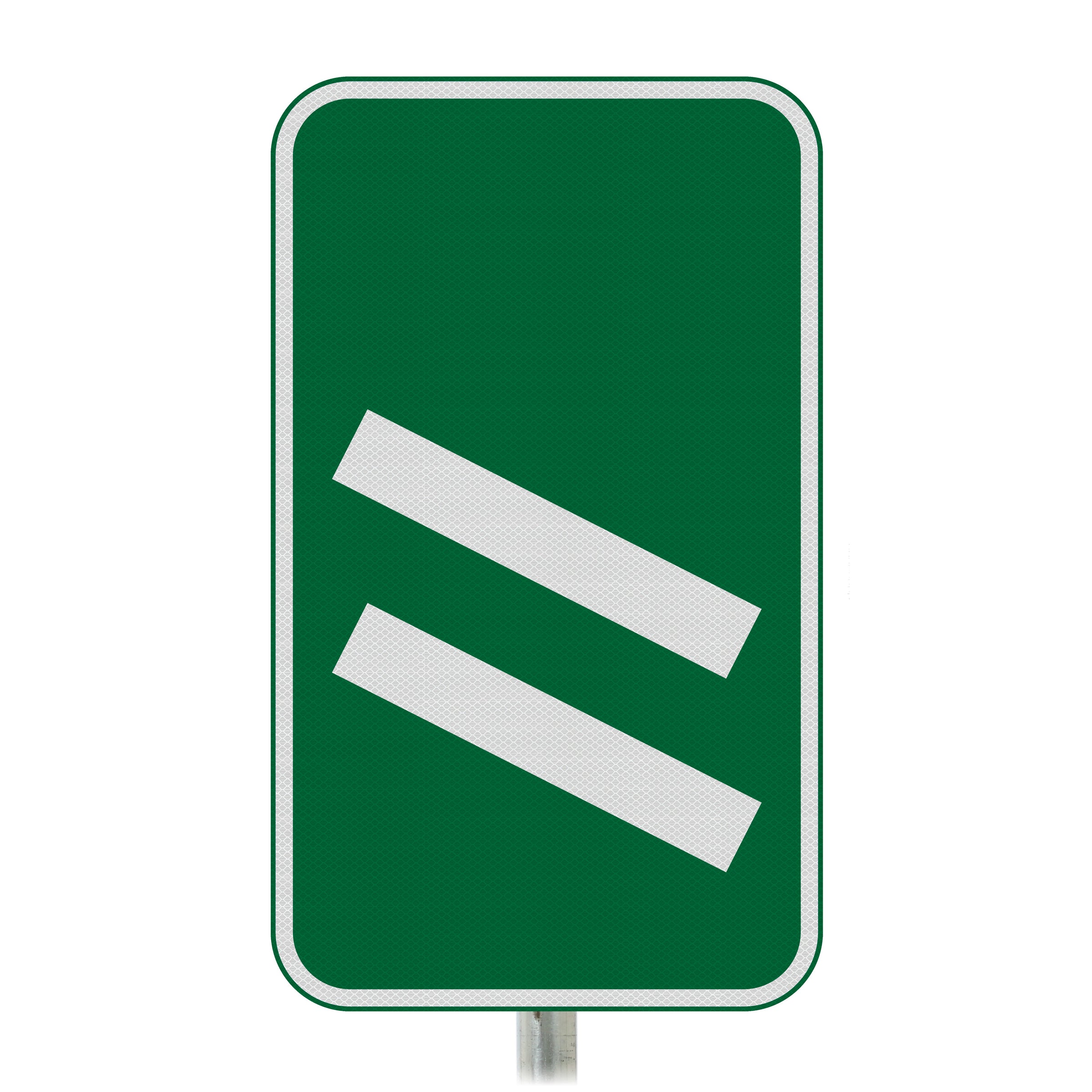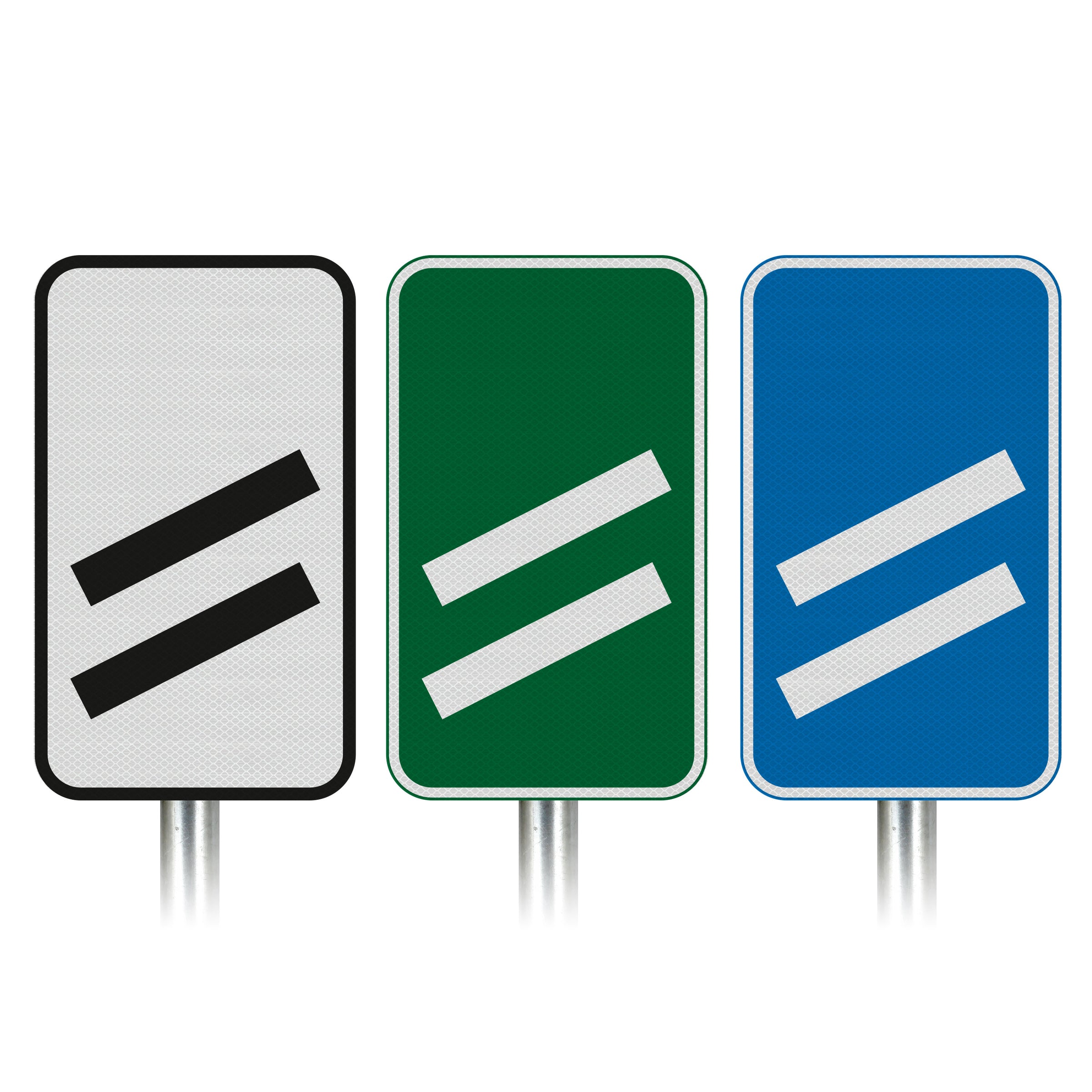 This countdown sign face 824 is available in three colours these are with a blue background, green background, or white background with black bars. When placed on a verge they are considered left-handed, and on the central reservation, they are considered right-handed. These signs ensure road users know exactly how far a junction is away, allowing them to adjust their driving speed appropriately.