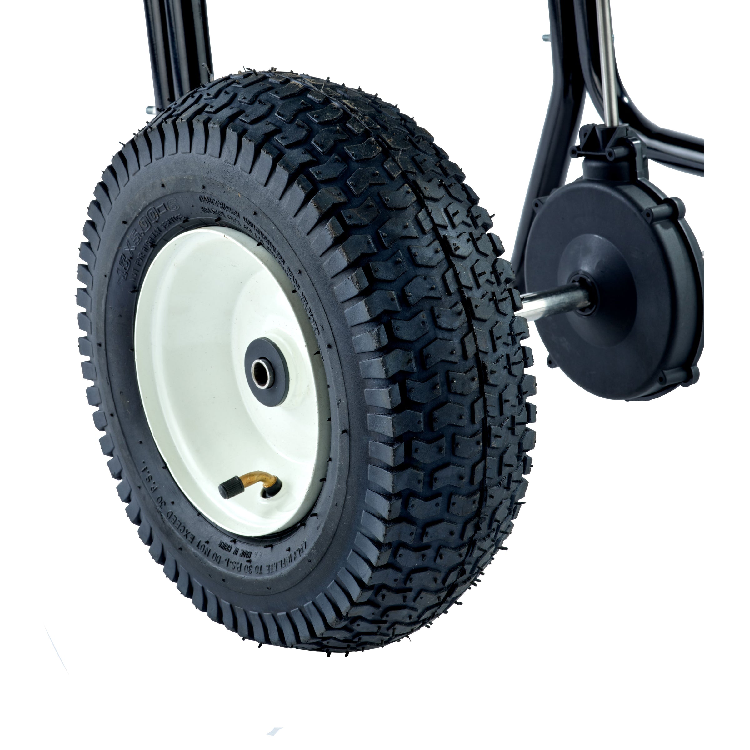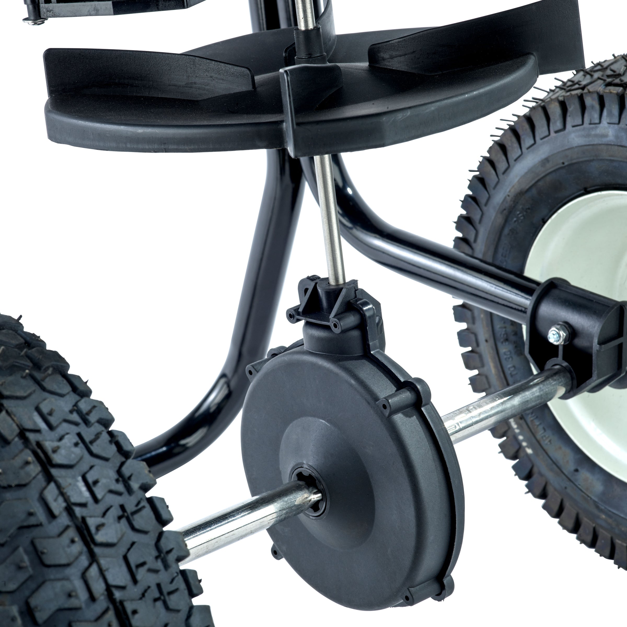 The 20SW features pneumatic tyres, which give it a better grip on grassed surfaces and frosty tarmac. These tyres help drive the enhanced gearbox, ensuring better and more consistent dispersal of grit or seed. The 20SW comes supplied with both winter and summer sliders, which allow you to fine-tune the amount of material the spreader dispenses for better results.