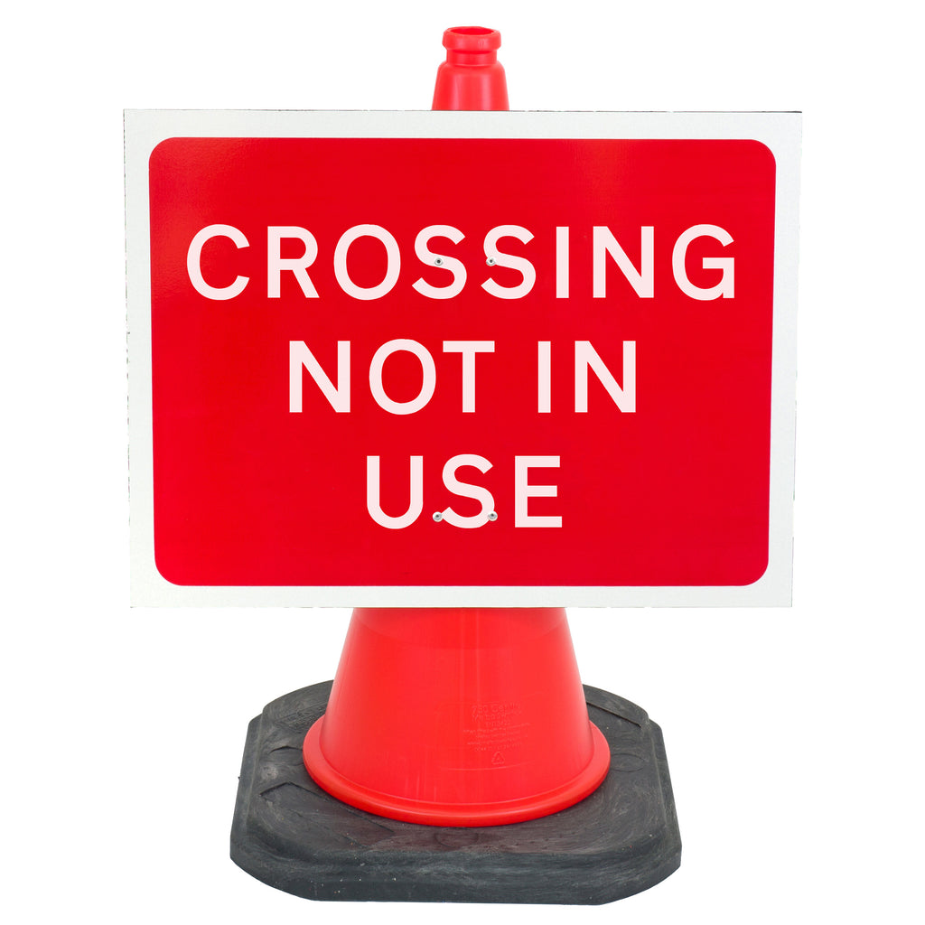 This cone sign informs pedestrians and cyclists that the crossing point is out of order and that an alternative crossing point should be used. Designed to be mounted on a 750mm or 1-metre cone (commonly 750mm), it means it can be stored almost flat, is light and easy to transport and is very cost-effective.