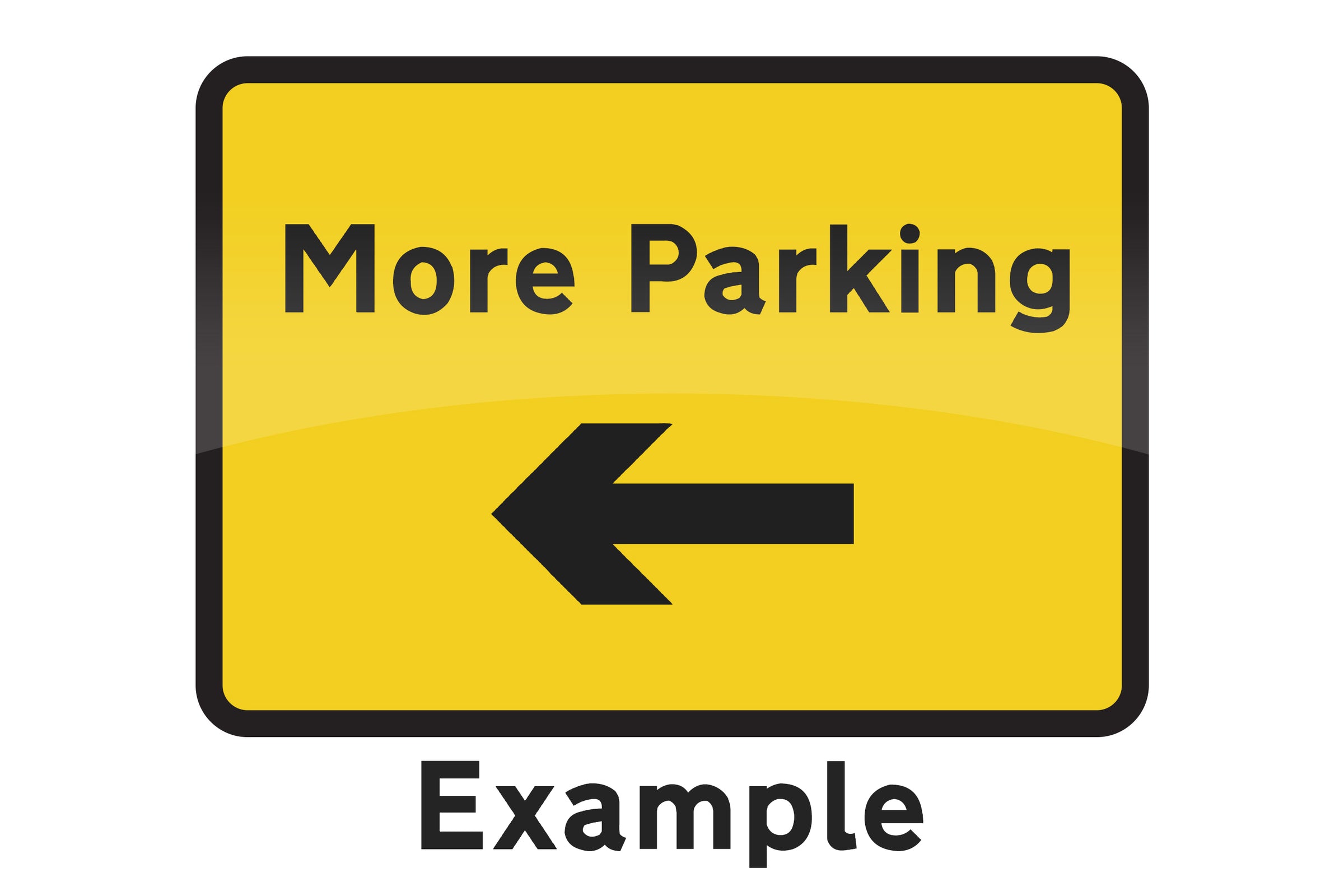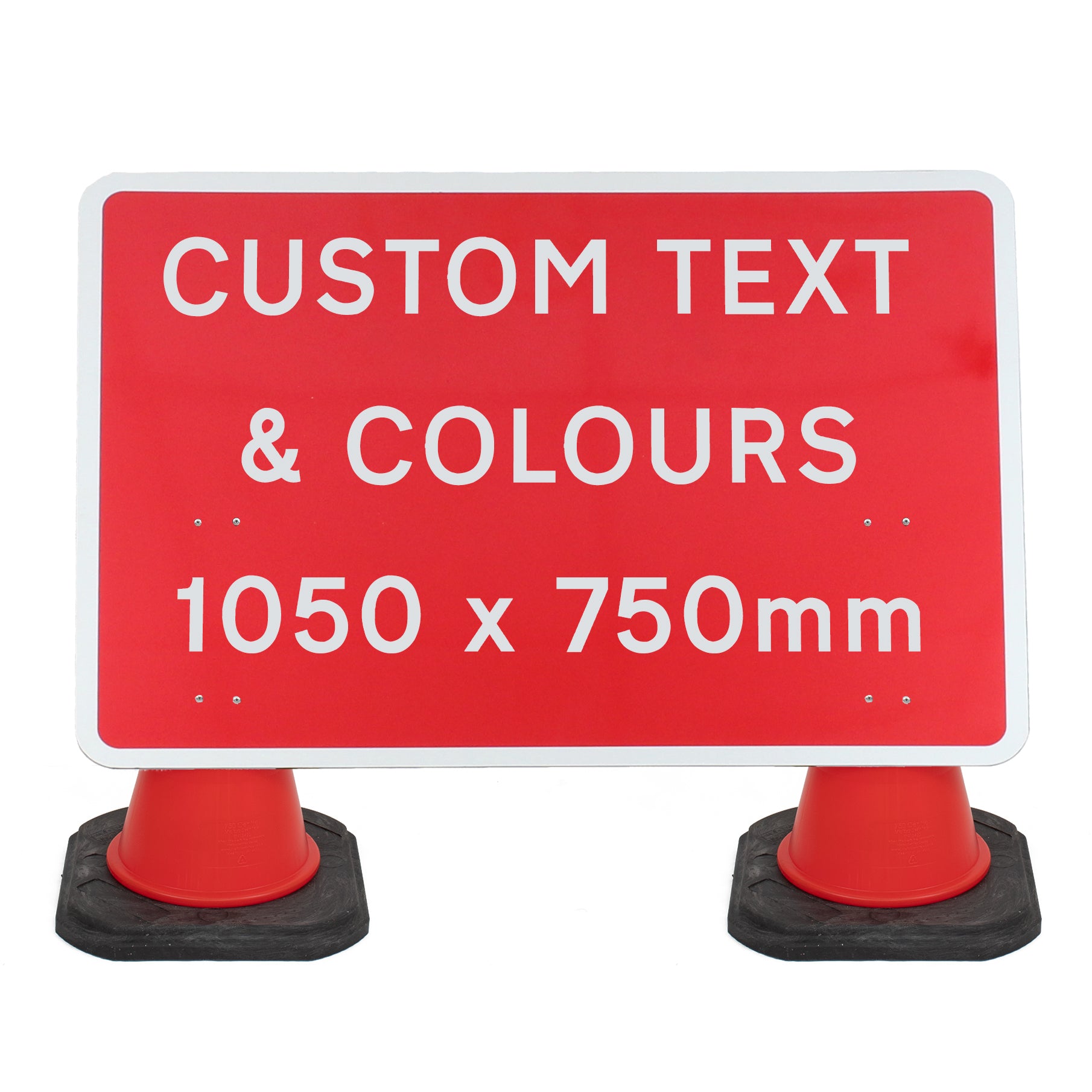 A customised cone sign face with dimensions 1050 x 750mm, usually used during roadworks or events. This sign face is available in four colour combinations with any text of your choice. For this 1050x750mm version you will require two cones to support the sign.