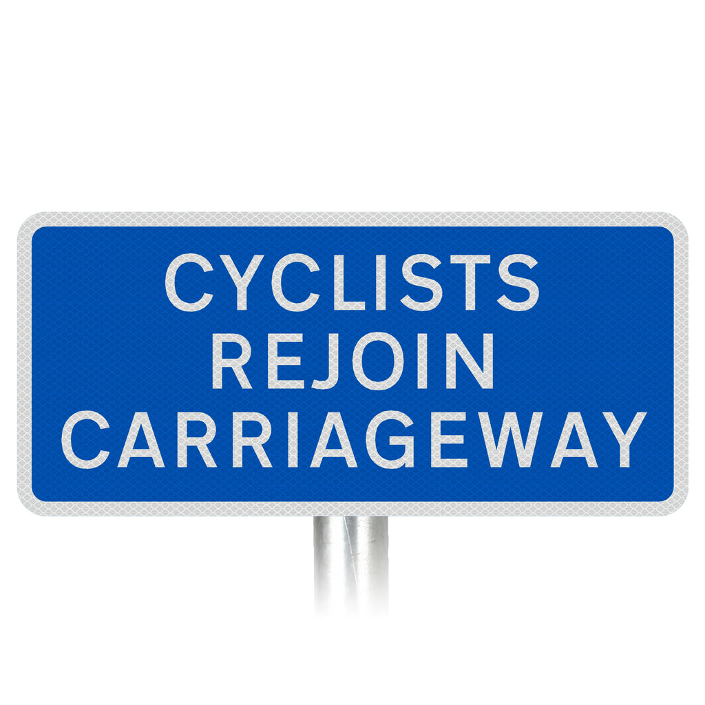 This ‘Cyclist Rejoin Carriageway’ post mounted sign should be used in areas where the cyclist lane is coming to a close and cyclist are required to rejoin the carriageway.
