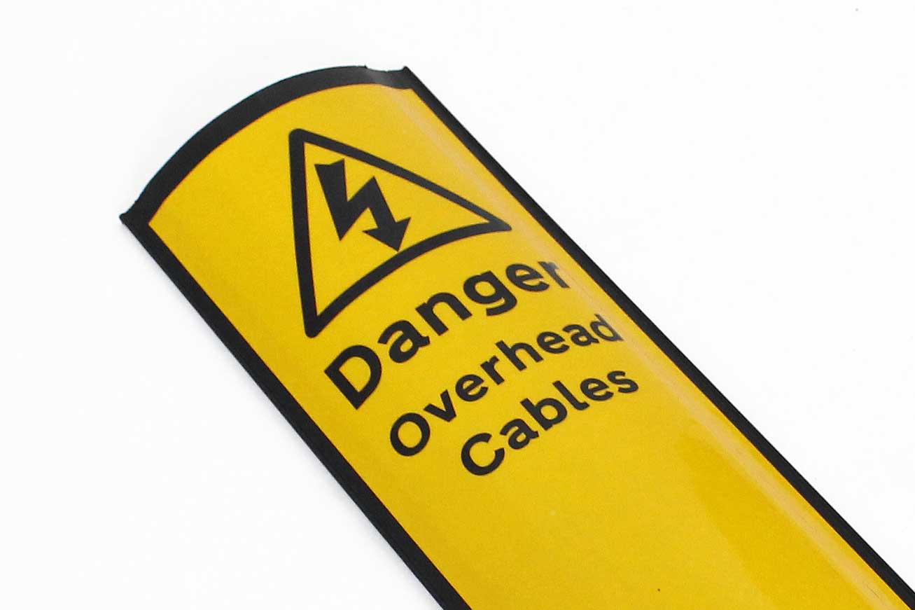 This 'Danger Overhead Cables' information post is designed to be virtually indestructable, easy to install and offer excellent value. Manufactured from a high flexibility plastic this will bend instead of break when involved in a collision - and then pop right back to the original shape.