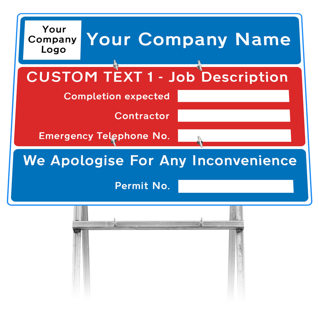 When carrying out planned roadworks, it's important to display an information board for the public to read. These signs typically say who is carrying out the work, the expected date of completion, and an emergency contact number. This particular variant of this sign incorporates dry wipe areas, so the signs can be used for multiple jobs or changed on-site if required.