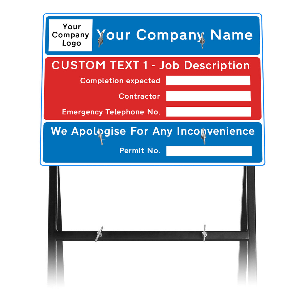 When carrying out planned roadworks, it's important to display an information board for the public to read. These signs typically say who is carrying out the work, the expected date of completion, and an emergency contact number. This particular variant of this sign incorporates dry wipe areas, so the signs can be used for multiple jobs or changed on-site if required.