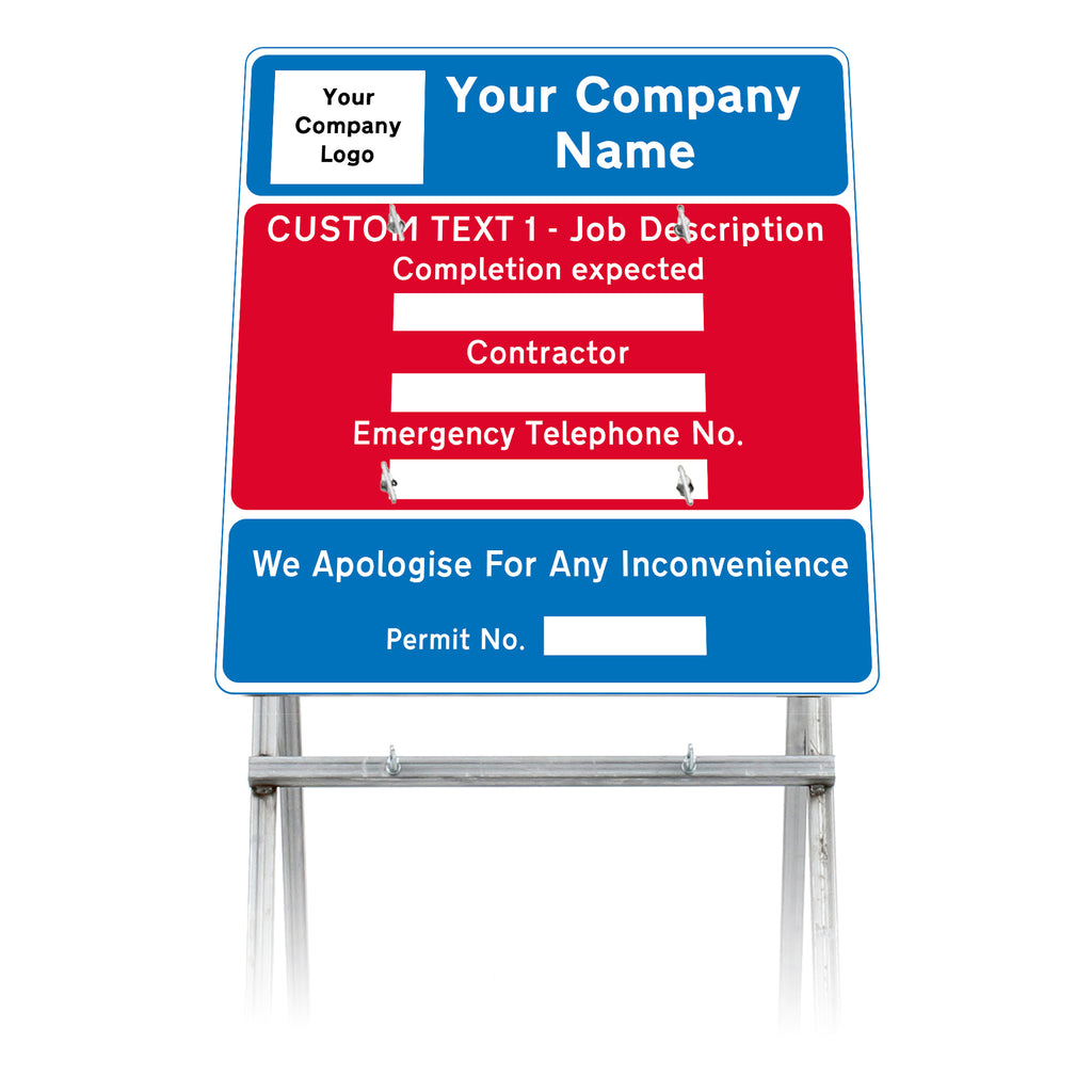 When carrying out planned roadworks, it's important to display an information board for the public to read. These signs typically say who is carrying out the work, the expected date of completion, and an emergency contact number. This particular variant of this sign incorporates dry wipe areas, so the signs can be used for multiple jobs or changed on-site if required.