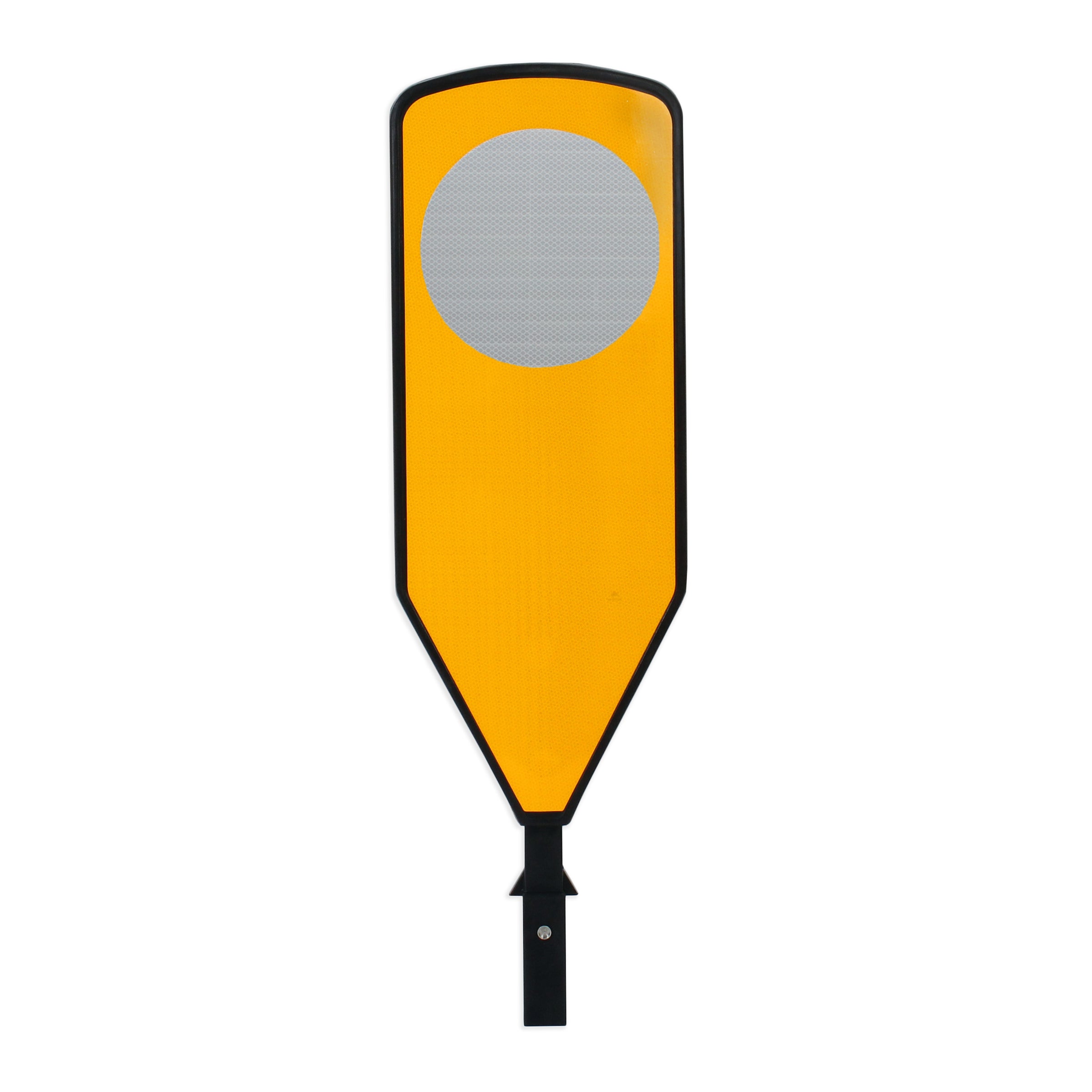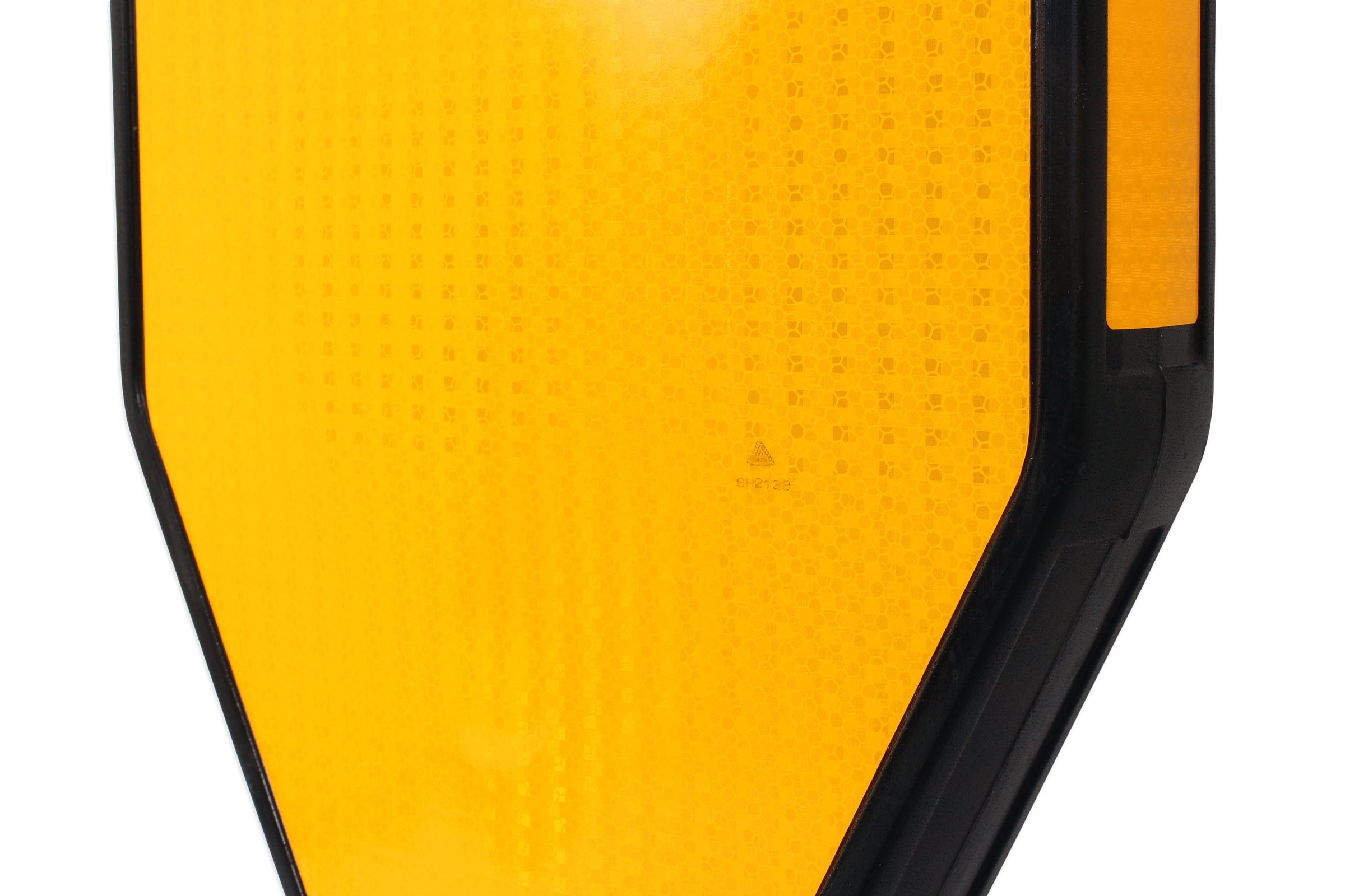 As standard these bollards come with a plain non-reflective backing to them, however we have the option to have these with a yellow reflective backing or to have them printed with another traffic symbol if required.