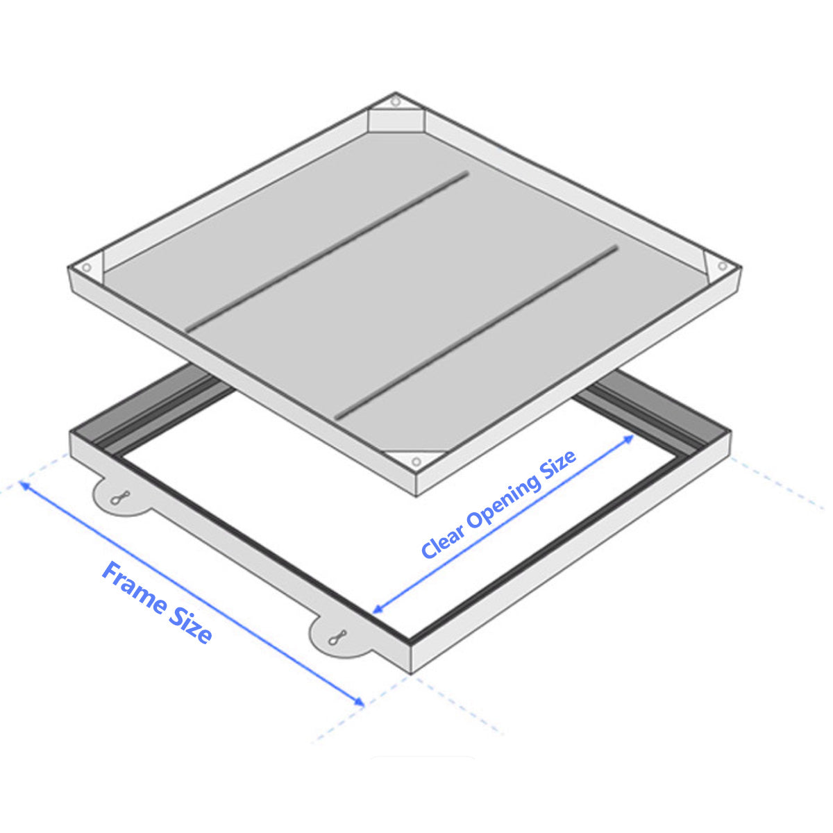 These aluminium recessed access covers are available in a wide range of sizes and depths giving you great flexibility when installing. Starting at 300x300mm, clear opening sizes go up to 600x600mm and many in between, we should have a cover to suit your needs without resorting to expensive bespoke solutions.