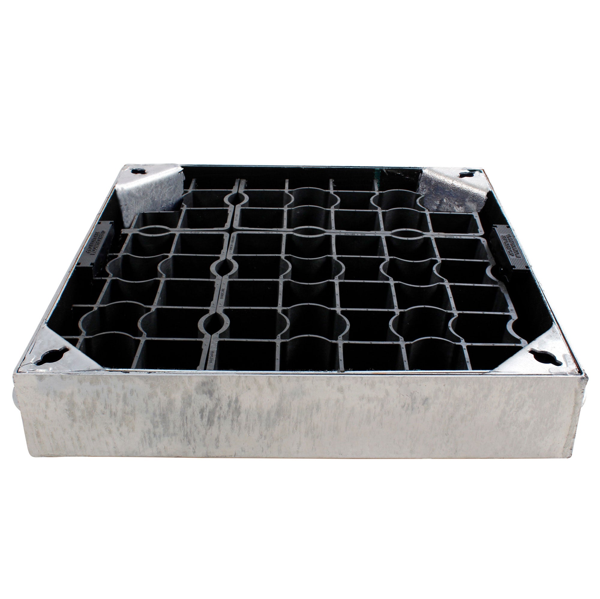 These inspection covers have pre-drilled drainage holes in the bottom of the galvanised tray meaning the tray will not fill with water killing grass or becoming a permanent puddle. The holes in the tray are spaced out equally helping the tray drain water with ease at a steady rate.