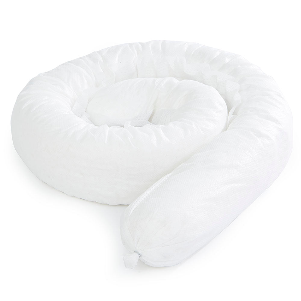 Our Oil Only socks have a white spunbond outer skin with a recycled hydrophobic absorbent filling. These offer fast absorption of Oil Only liquids and act as a containment barrier for any incidental spills.