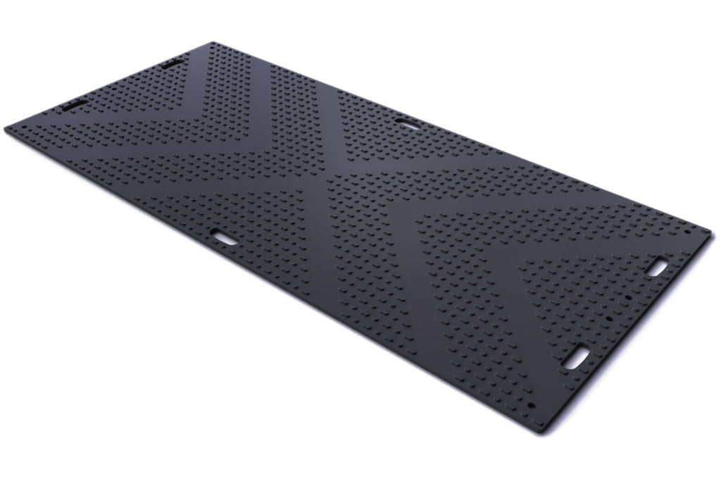 The EuroMat is a great ground protection product. It has a deep black colour and chevron style traction pattern. If you are running heavy equipment over an area then the EuroMat should be a strong contender for the application.