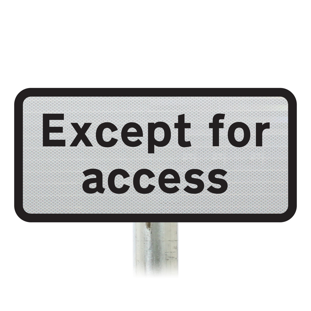 This supplementary plate is usually used alongside a sign prohibiting vehicles of certain types or at certain times an example being of which is sign face 622.1A which places restrictions on the weight of vehicles allowed past the sign. This sign grants permission for vehicles to pass but only for reasons of accessing premises or land adjacent to the road.