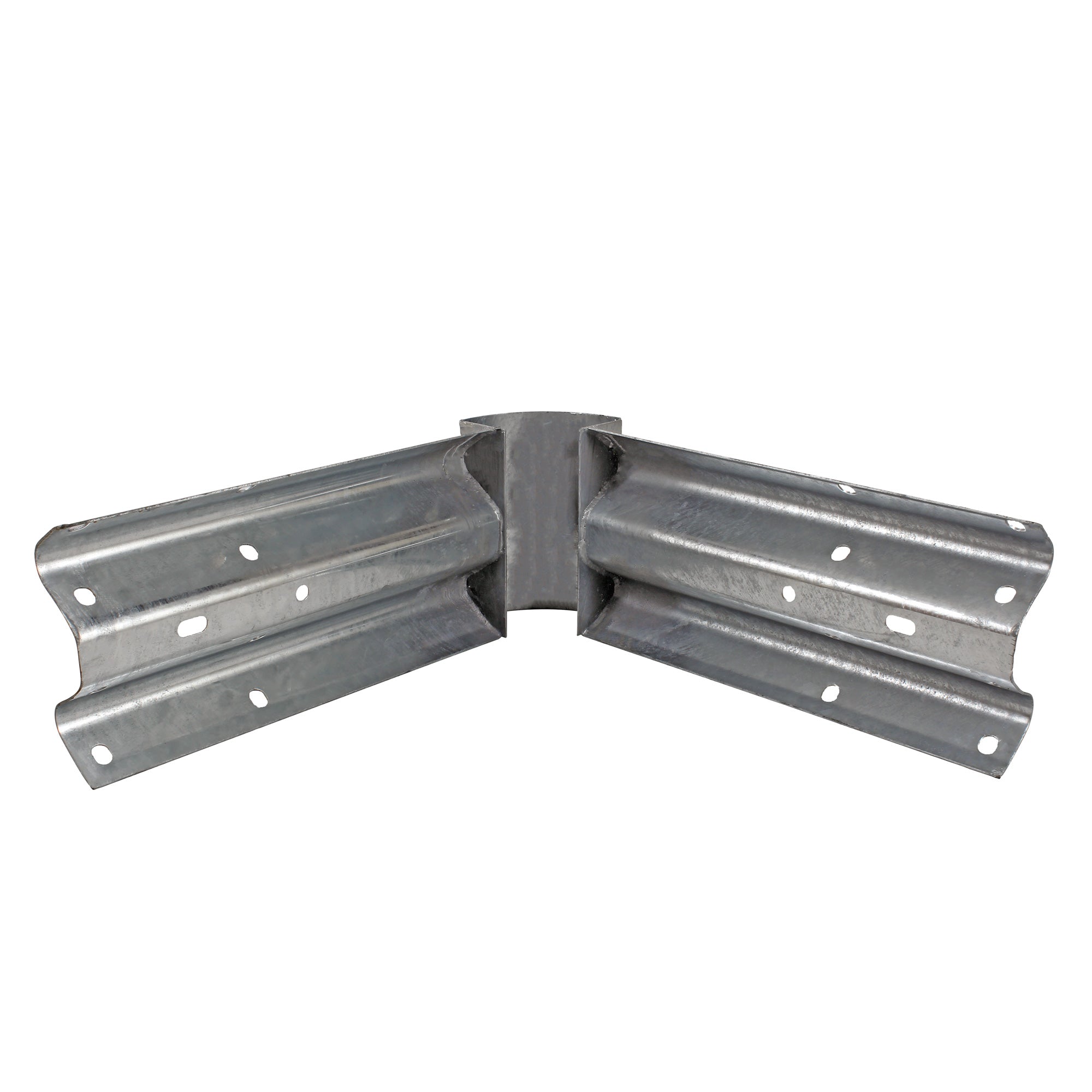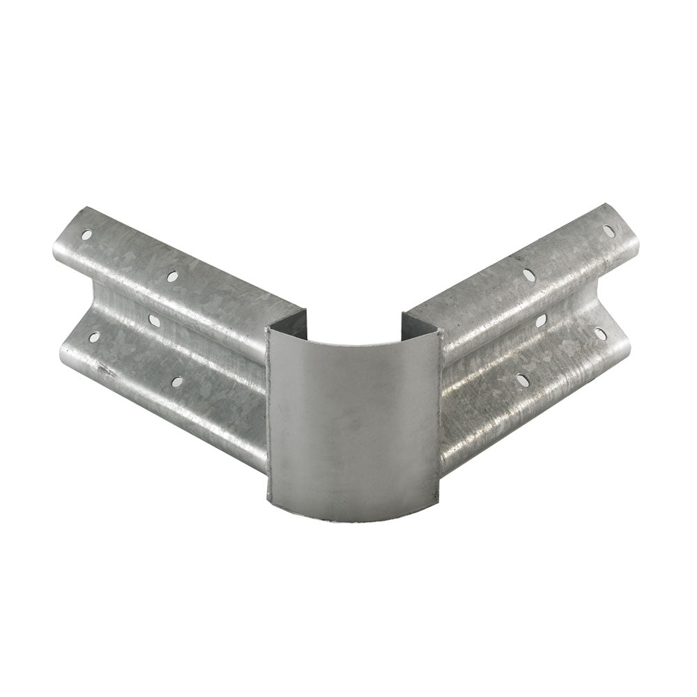 This premium Fabricated external corner features welded sections of Armco onto a flexible plate, creating a neat finish without compromising protection offered by the Armco beam. It features fixing points for two posts and also lap bolts for connection to adjacent beams, or end caps. We also have this very same product available as an internal corner here.