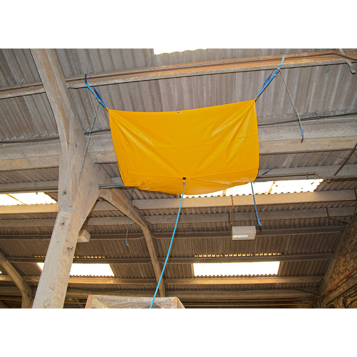 - Pack Contents: 1 Leak Diverter Tarp & Fittings - Yellow Tarp, 4 x Hanging straps, Hozelock attachments