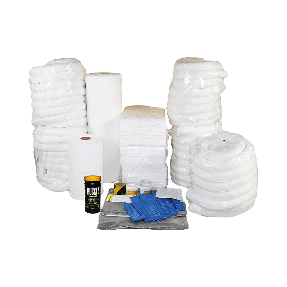 - Pack Contents: Contents 40 x Absorbent socks 8cm x 3m 300 x Absorbent pads 39cm x 48cm 3 x Absorbent Roll 48cm x 39M 2 x Plug Rug drain cover 40cm x 40cm 2 x 0.5kg Plugging compound 12 x Disposal bag & tie 1 x Roll Spill Hazard tape 1 x Tub of 100 Textured Wipes (ESW-100) Instruction and contents sheet