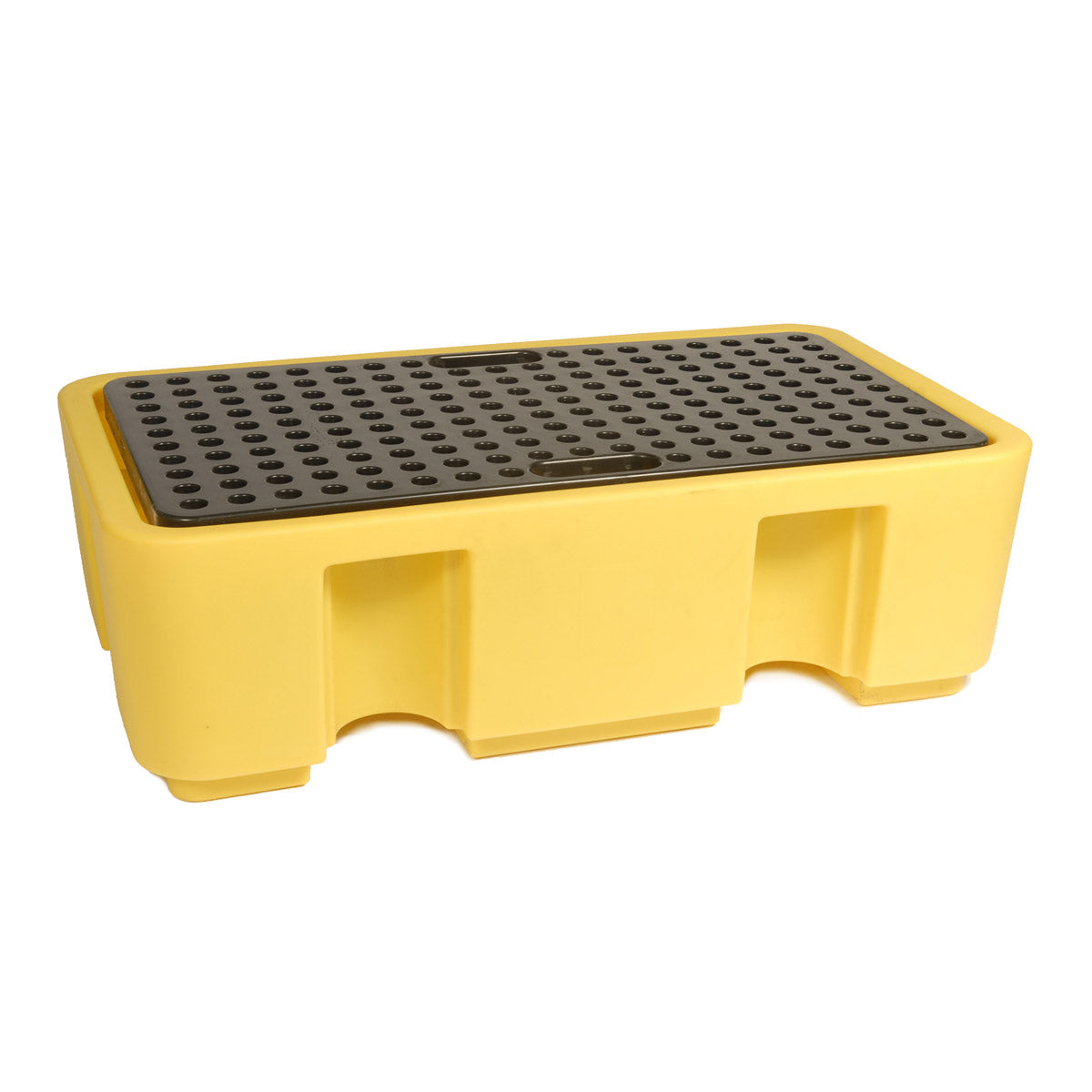Spill pallet for 205 Litre Drum Removable platform for easy sump access and cleaning Complies with Oil Storage Regulation Compatible with most forklifts and pallet trucks* Low sump for ideal working height Fully recyclable, chemical resistant, UV-stabilized PE NOTE * Remove drums before fork lifting. *Please note drum not included