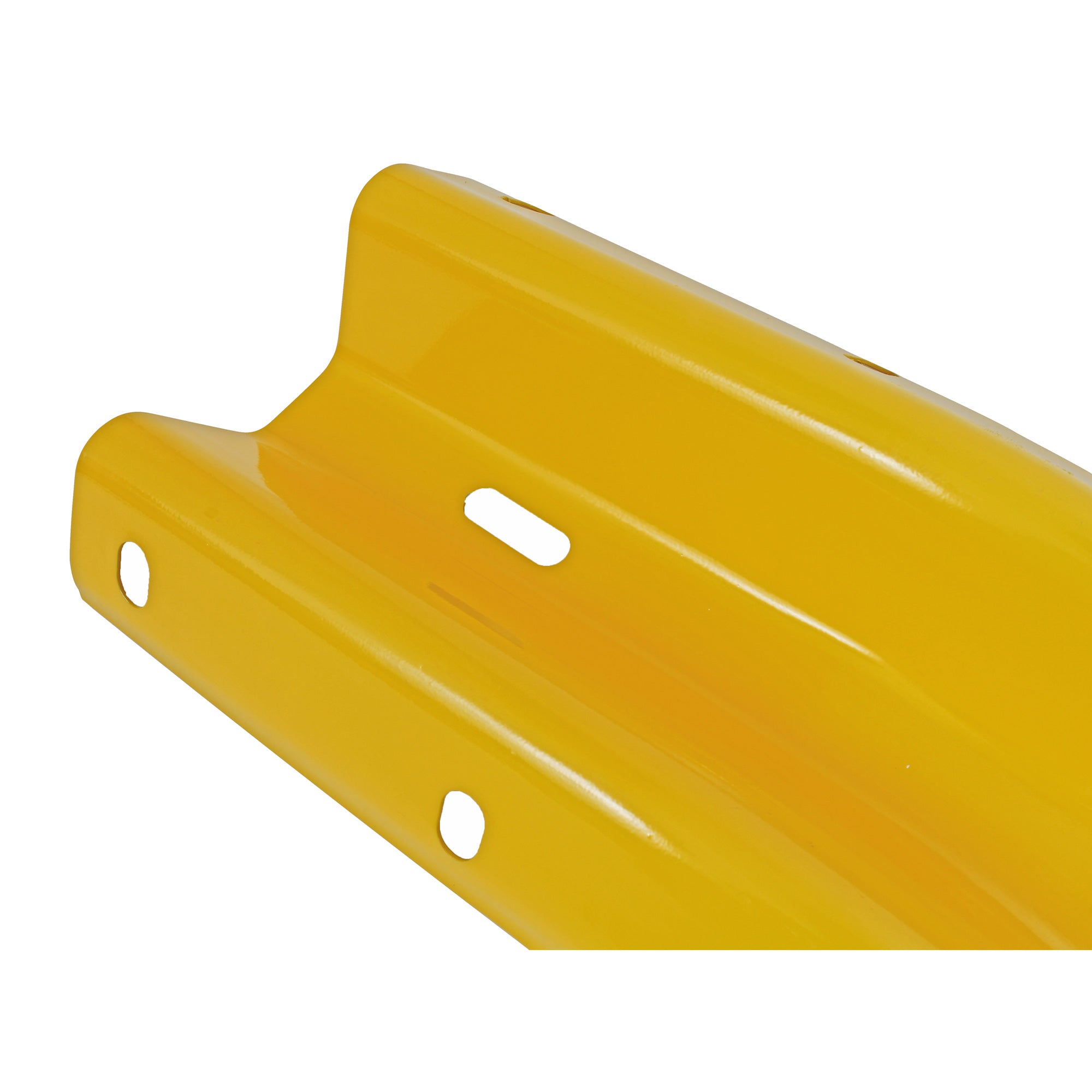 The bright yellow colour of this makes it easier to spot and should in its own right reduce the number of times this barrier end makes contact with any vehicles. The end cap is attached using eight-lap bolts and a centre post bolt. We also offer this scroll end section in a standard galvanised steel finish.