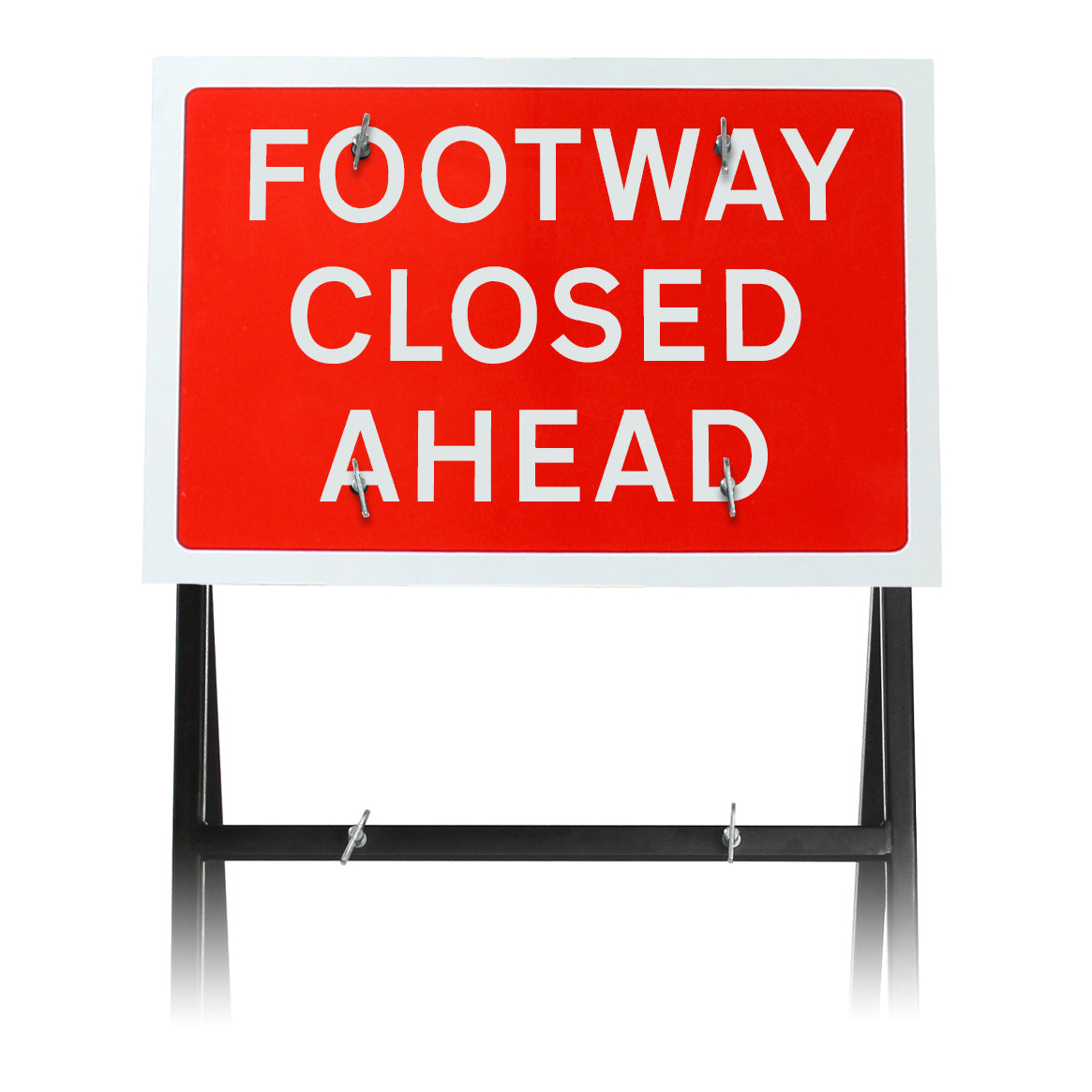 As with all of our chapter 8 signage, this quick-fit footway closed ahead sign is fully chapter 8 compliant when deployed in the correct manner. If you need a plain footway closed quick-fit sign, then we also have those on the shelf, as well as alternatives such as footpath, closed ahead quick fit signs, and footpath closed quick-fit signs.