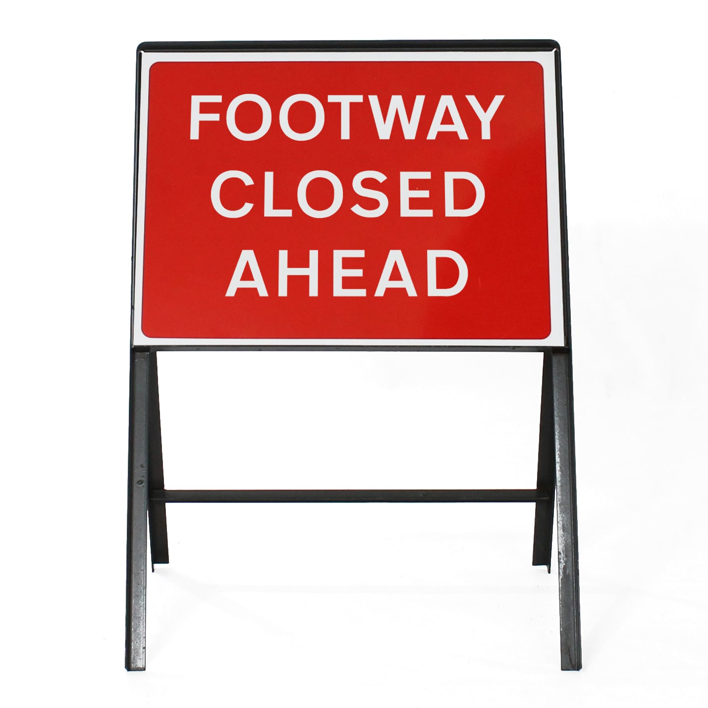 - Chapter 8 compliant Footway Closed Ahead sign in a 600x450mm size