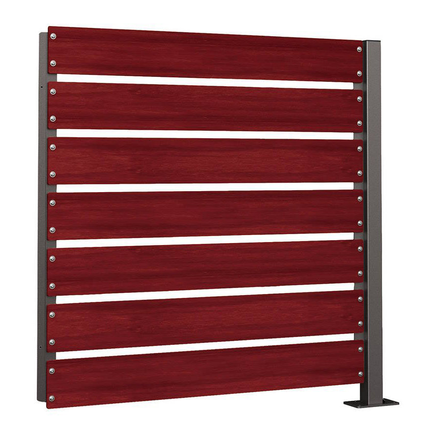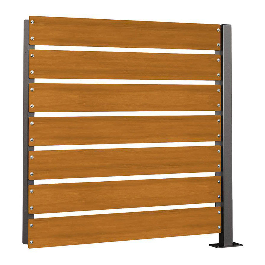 The HPL material presents an attractive wood stain effect and ensures longevity, corrosion resistance, and the weather resilience inherent in high-pressure laminate products.