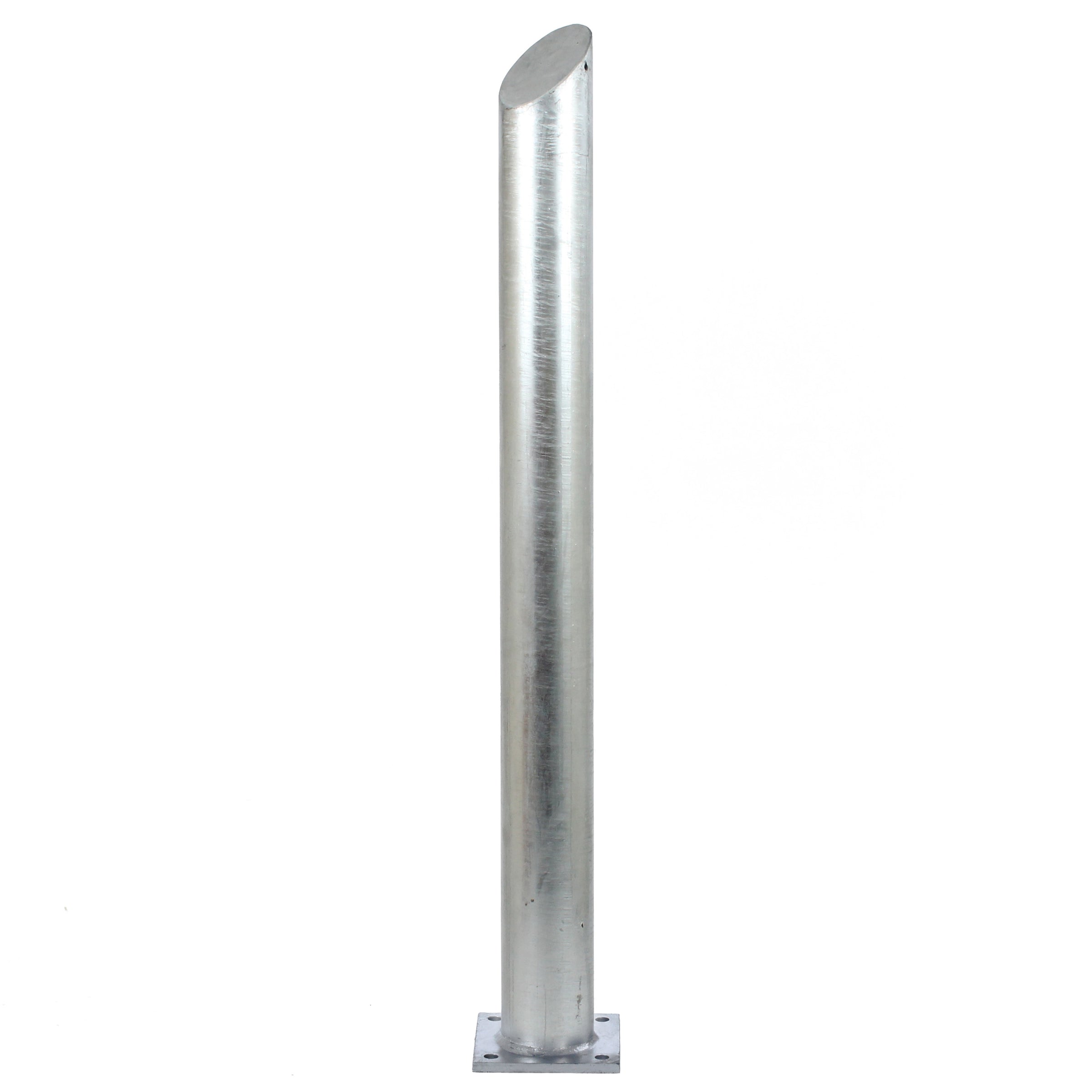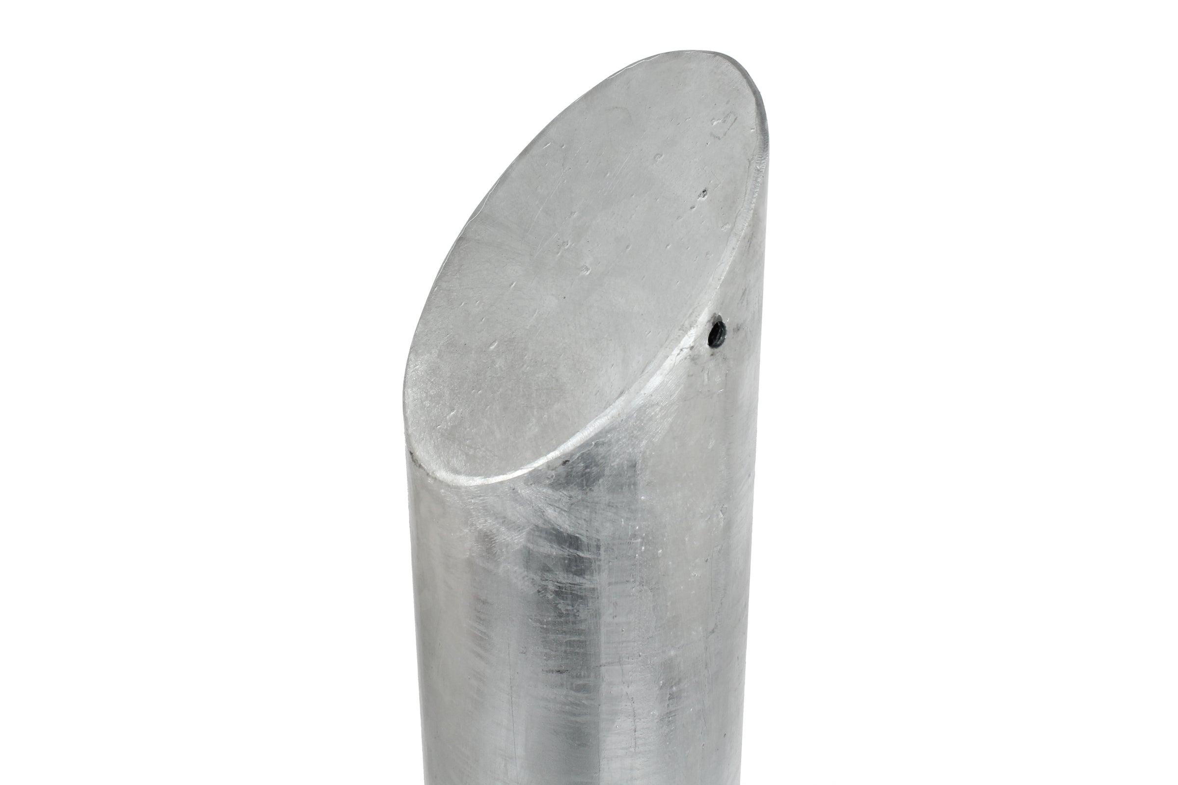 The galvanised mitre top bollard is a more cost-effective option when compared to the stainless steel mitre top bollard that we also supply. If required we can have this bollard painted in a RAL or BS colour to suit your needs, this will for obvious reasons, increase the delivery time.