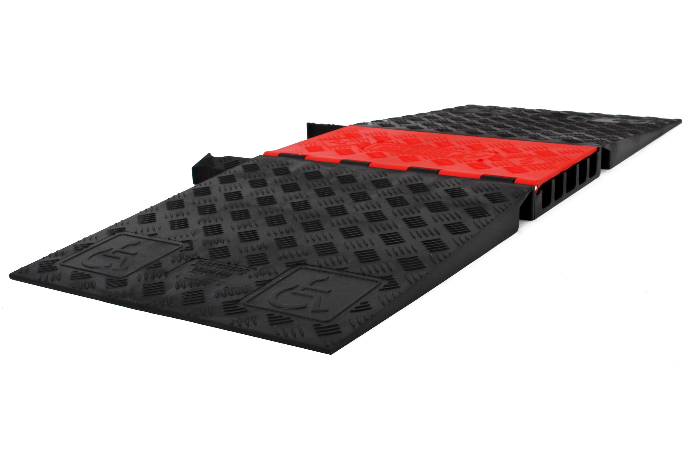 The Guard Dog ADA (wheelchair Friendly) 5 Channel Cable Protector offers the ability to accommodate larger cables up to 33mm (1.325”), but still, is suited to use by wheelchair users and those with impaired mobility. Wide ramps leading up to the cable tray on this ramp reduce the gradient.