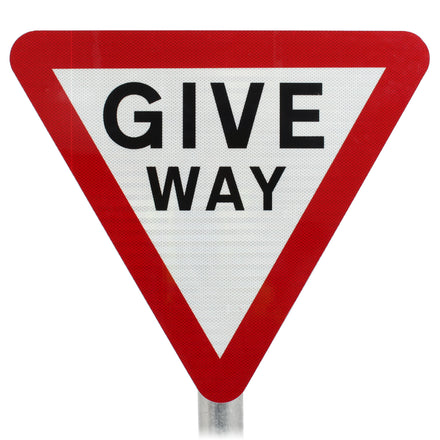 Give Way Post Mounted Road Sign In 450mm or 600mm (Clips Not Included)