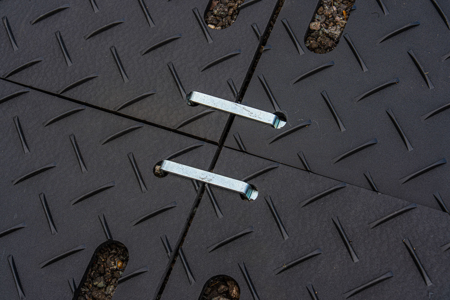 These two or four-way connectors can be used to quickly link multiple GroundTrak PRO mats together, creating a track, road or staging area where all mats are kept secure and will not shift.