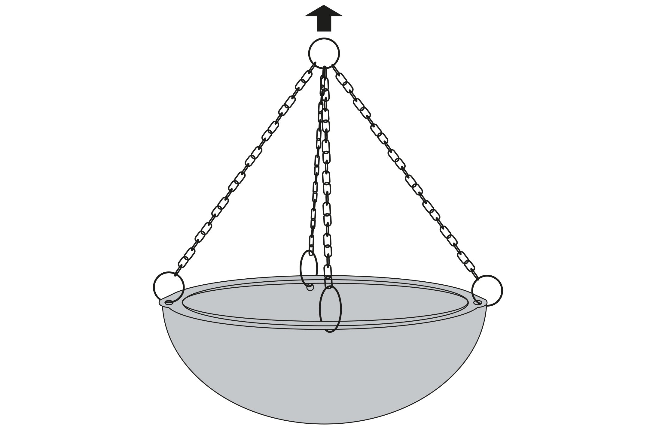 This mirror is suspended from the ceiling by four chains which are supplied with the mirror as part of the kit.