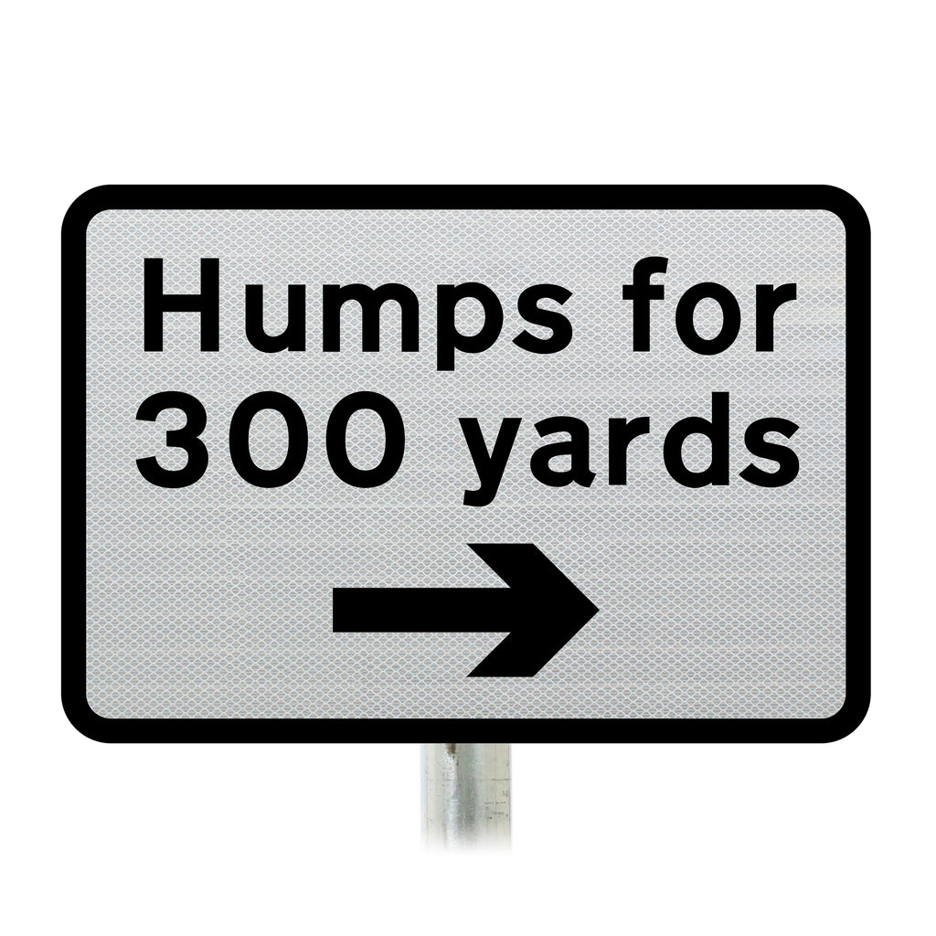 This supplementary sign is placed on routes that lead off onto roads with speed humps. It is installed alongside sign face 557.1 and warns drivers that if they turn onto a route there will be speed humps for a set distance.