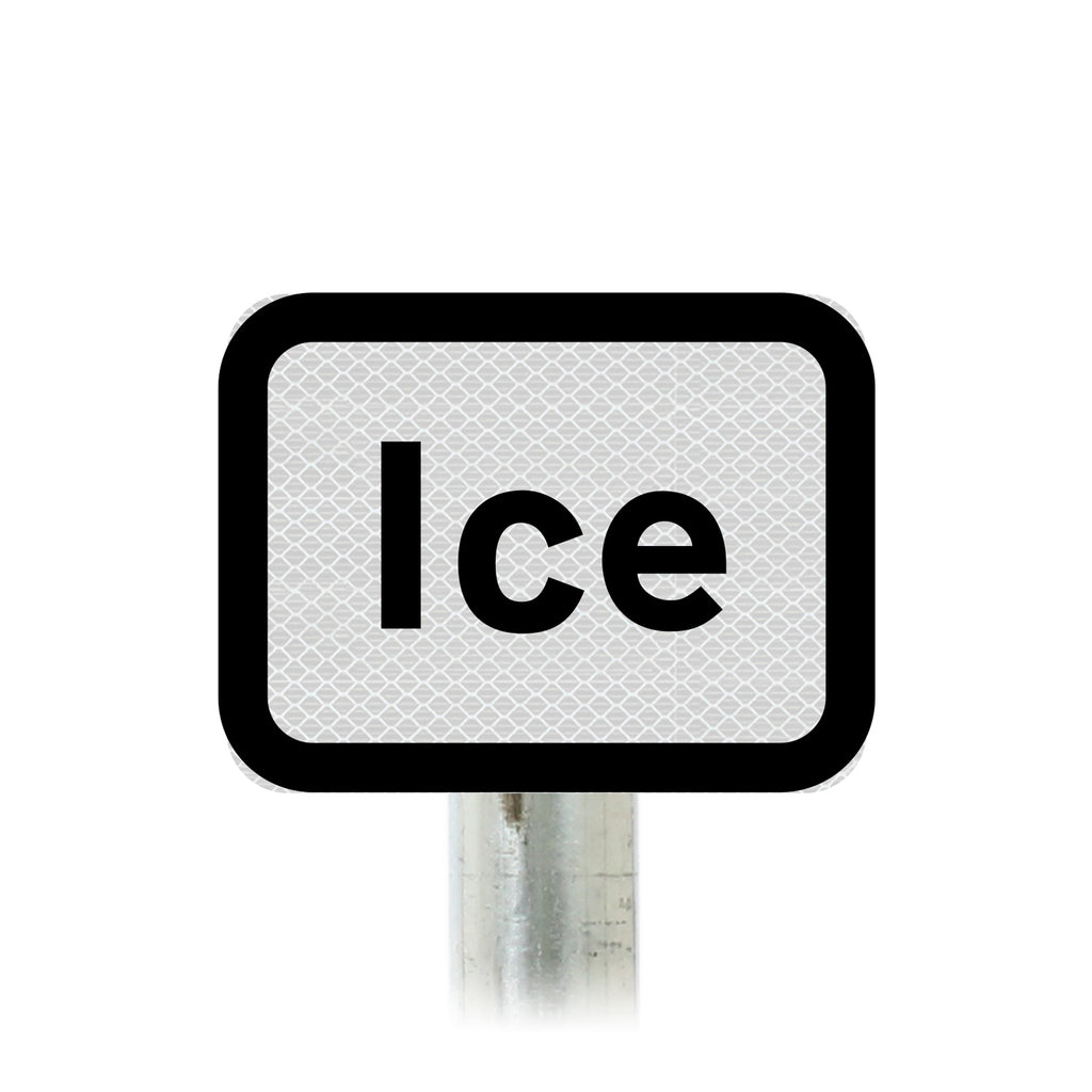 The Ice supplementary plate is a permanent sign that gives drivers warning that there is a high likelihood of ice on the road ahead. When installed alongside sign face 554.2 it gives a clear warning to drivers that extra care should be taken in case of loss of traction.