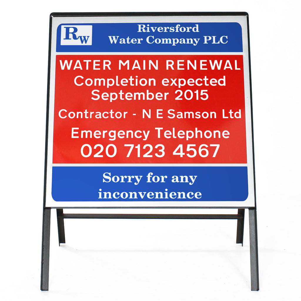 When commencing road works, a notification (or courtesy board) may be required during or ahead of the time. This design is based on the example supplied in the Red Book / Chapter 8 guidelines. Customise this product with the necessary information, including: