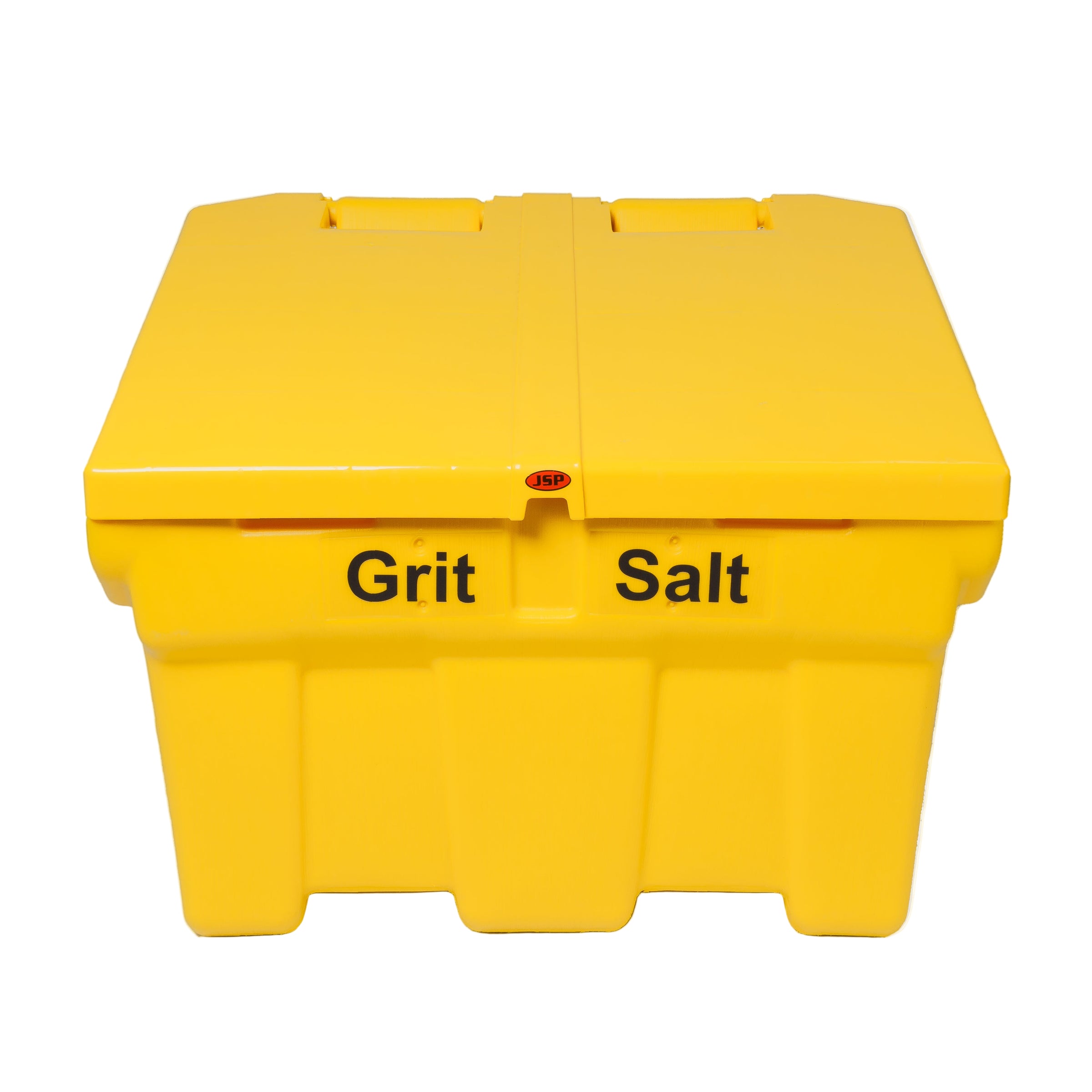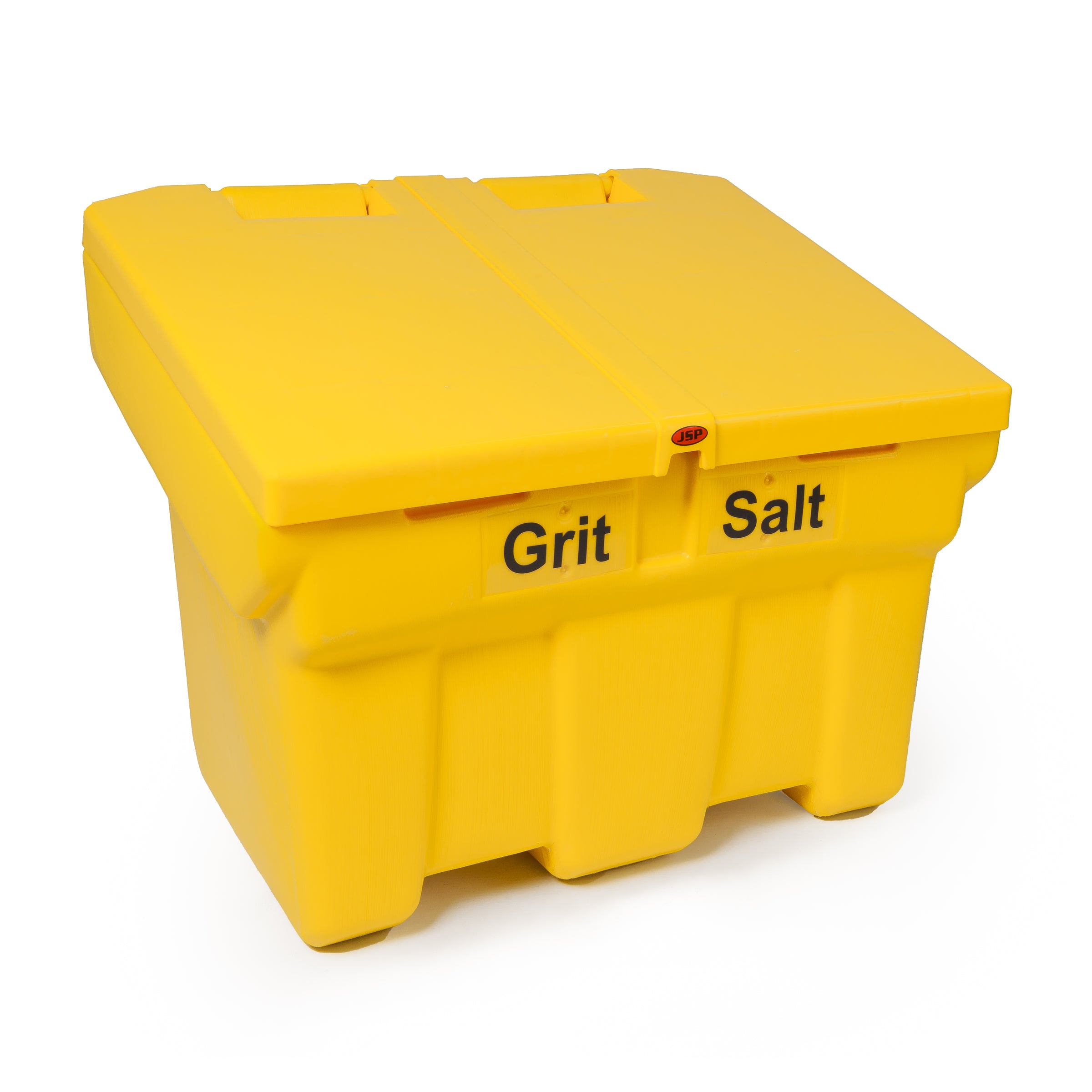 The blow-moulded JSP 200 litre grit bin is a durable and highly visible grit bin suitable for a range of environments, from school car parks to factory footpaths. It can fit in 10 bags of grit, which is plenty enough to keep your site or car park frost-free for weeks at a time.