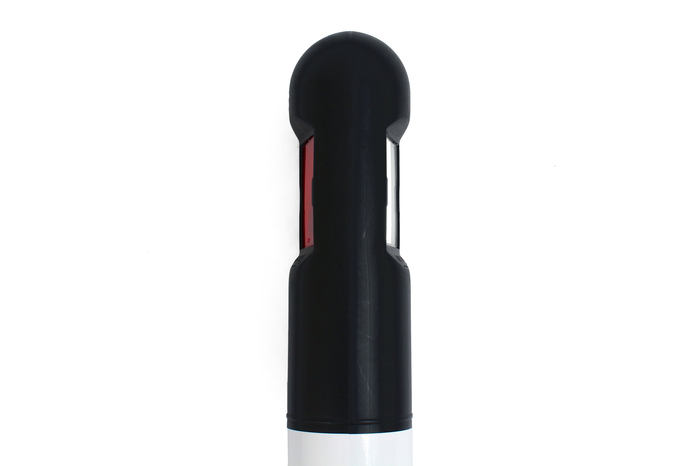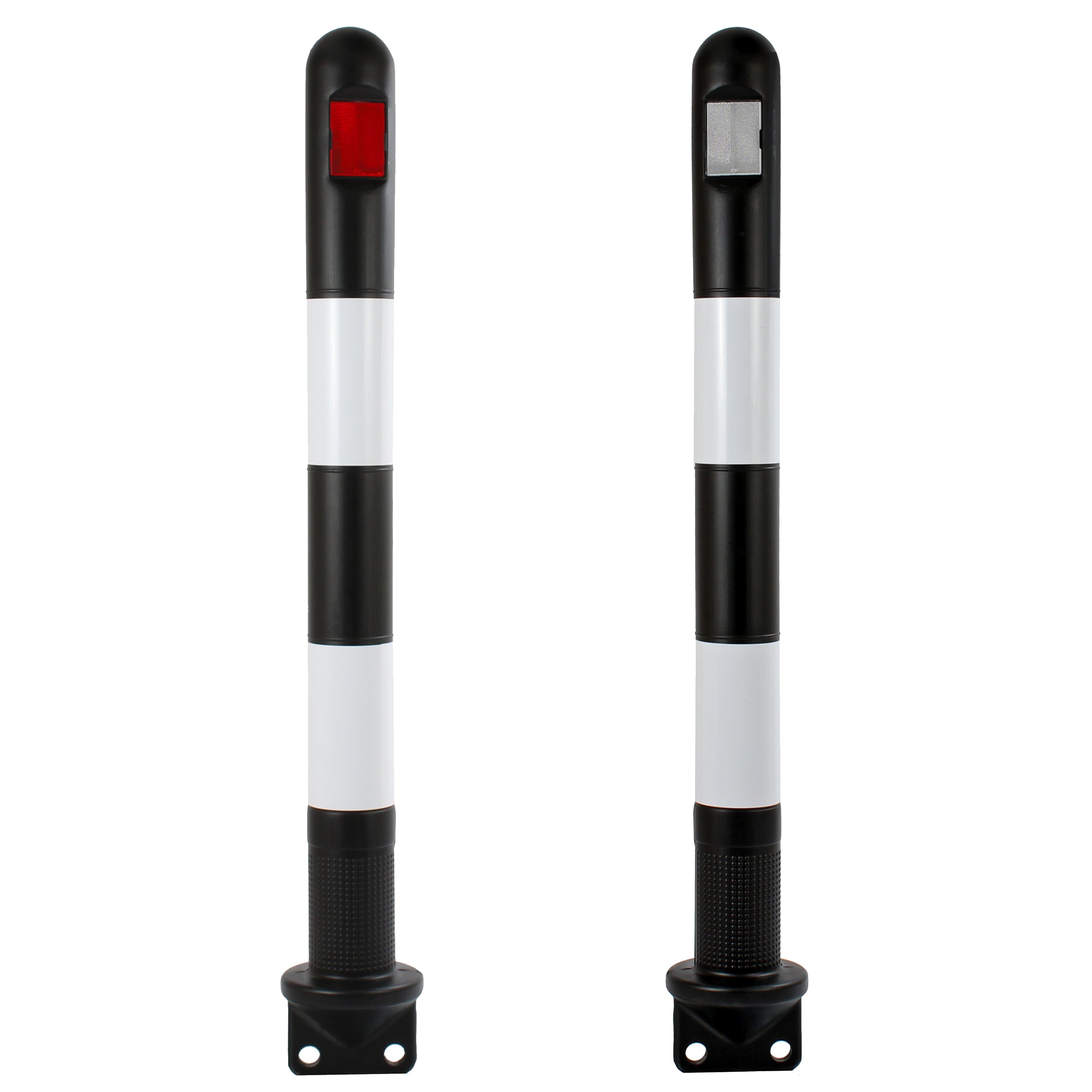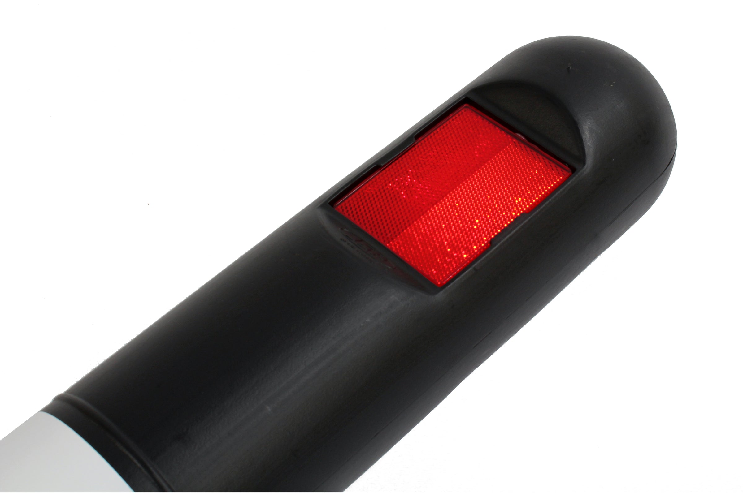 Each bollard features a red and a white main reflector at the top. These are placed so that the red reflector is on the near side of the road (passenger side). The white reflective areas around the main body of the marker further boost visibility.
