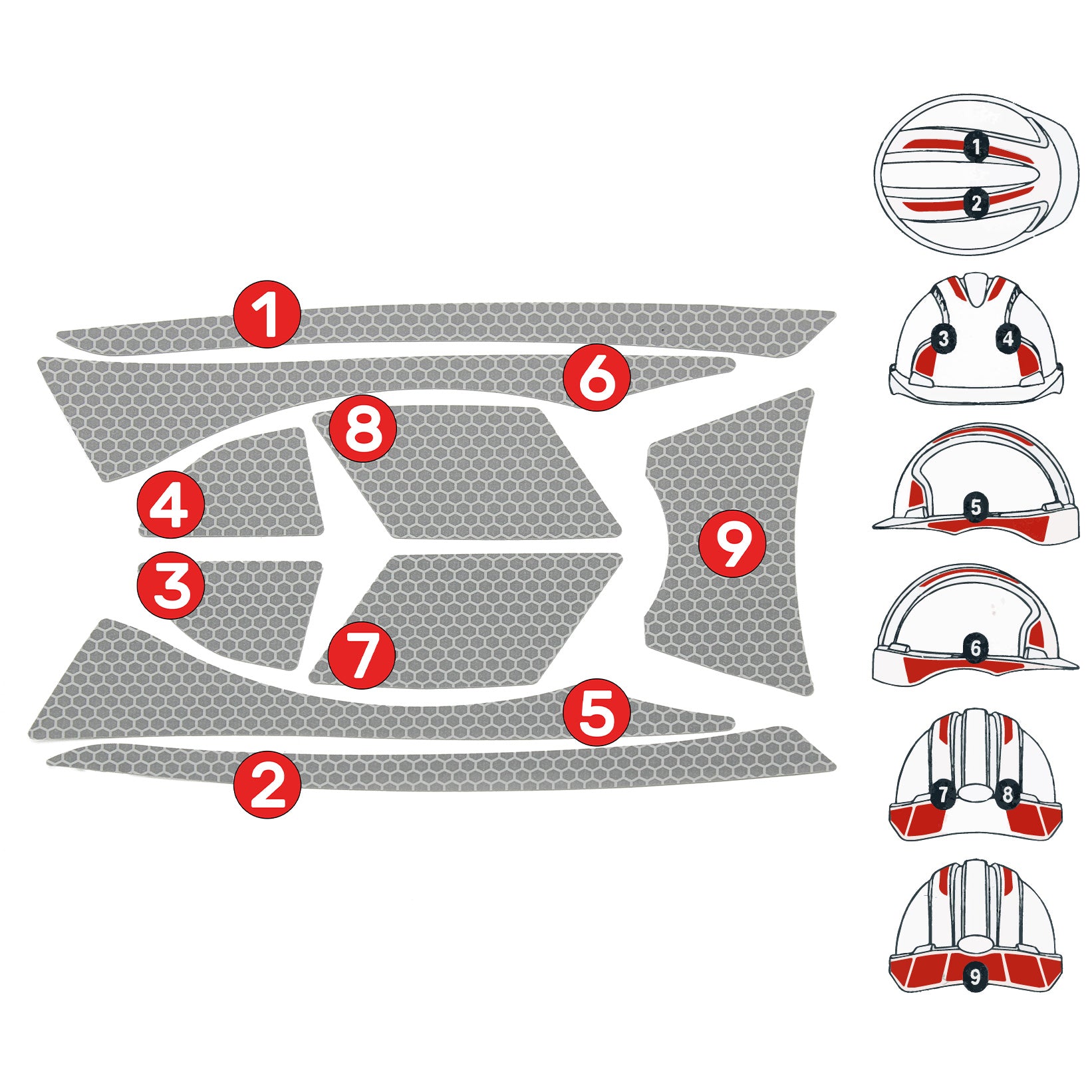 The decal kit for the EVO2 and EVO3 includes reflective panels that are applied to the front, back, sides and top of the helmet, ensuring that your head protection is visible from all angles. This added visibility is excellent when working around lifting equipment where crane operators may be many stories above.