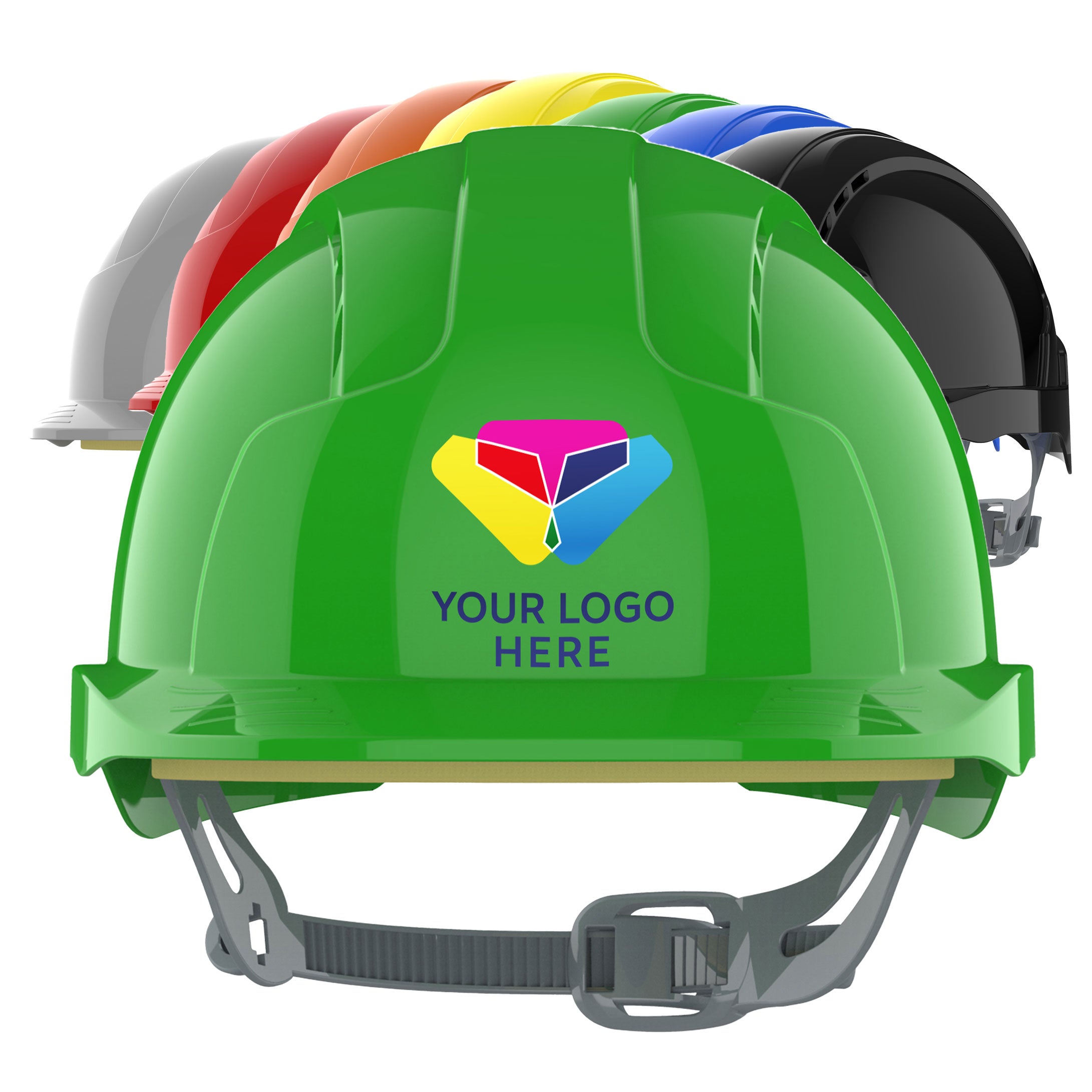 We have made ordering safety helmets branded with your company logo as simple as possible. You can choose any of the eight helmet colours and combine them with a printed logo composed of up to six colours. Opt for our branded hard hats today and ensure yourself a straightforward and swift process with quick delivery.