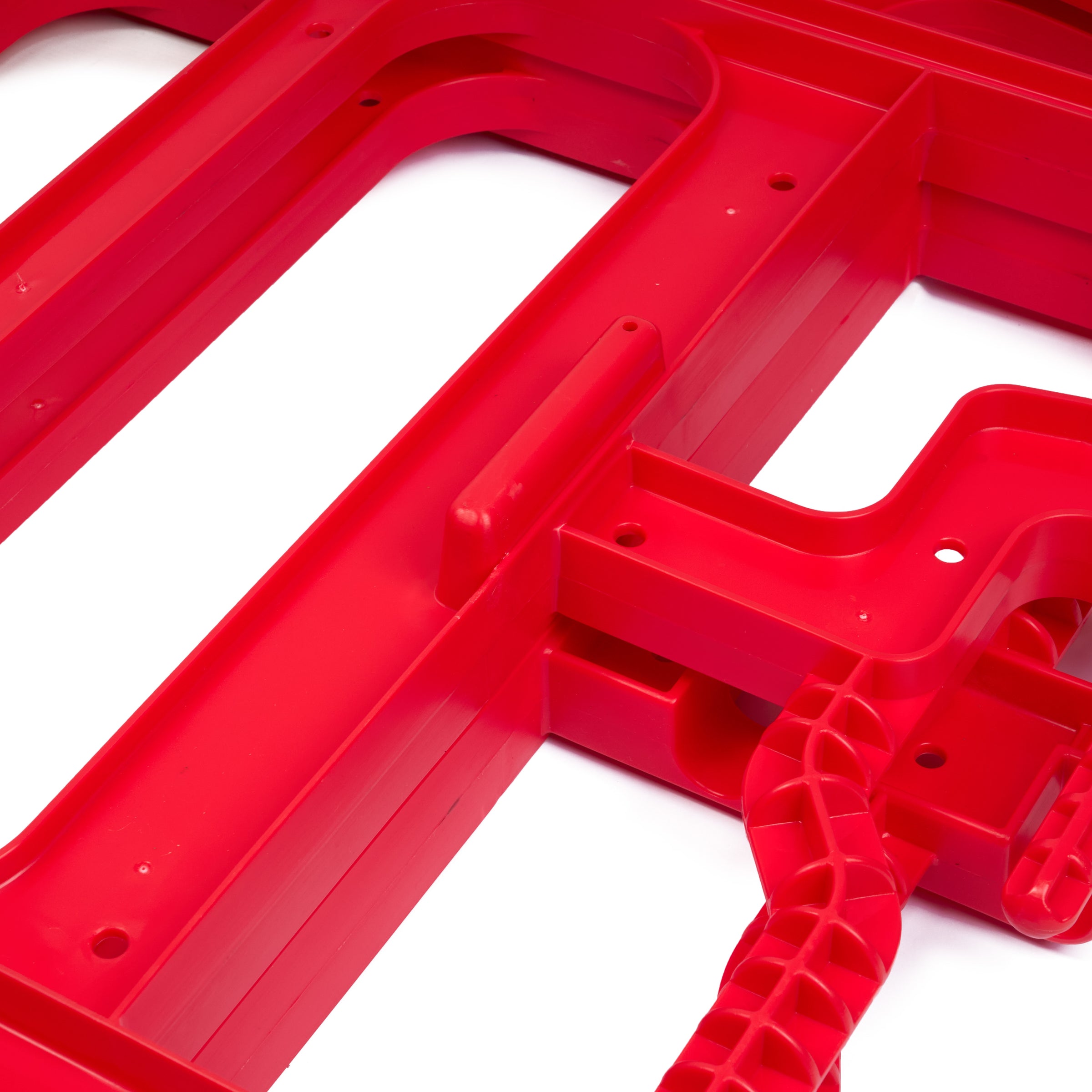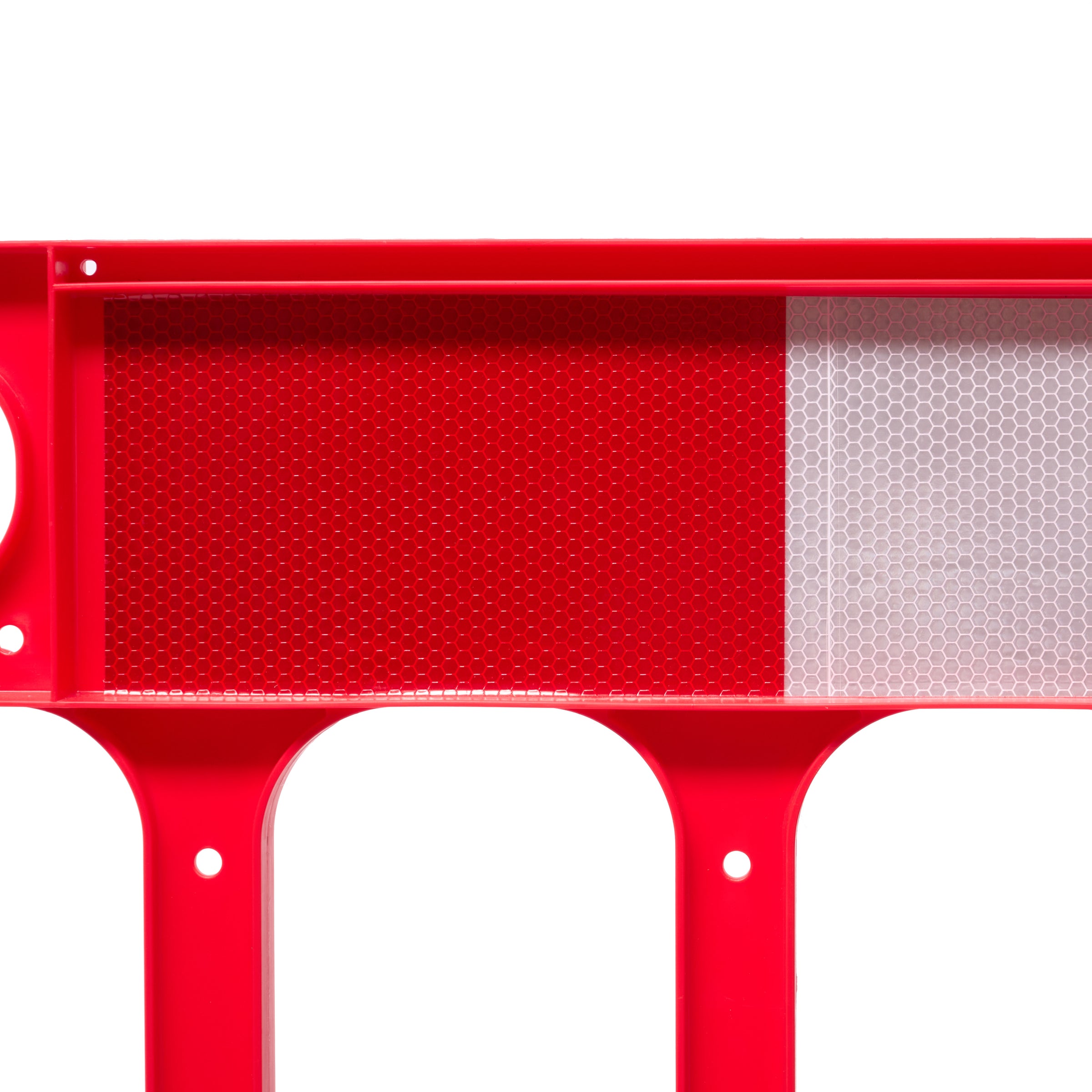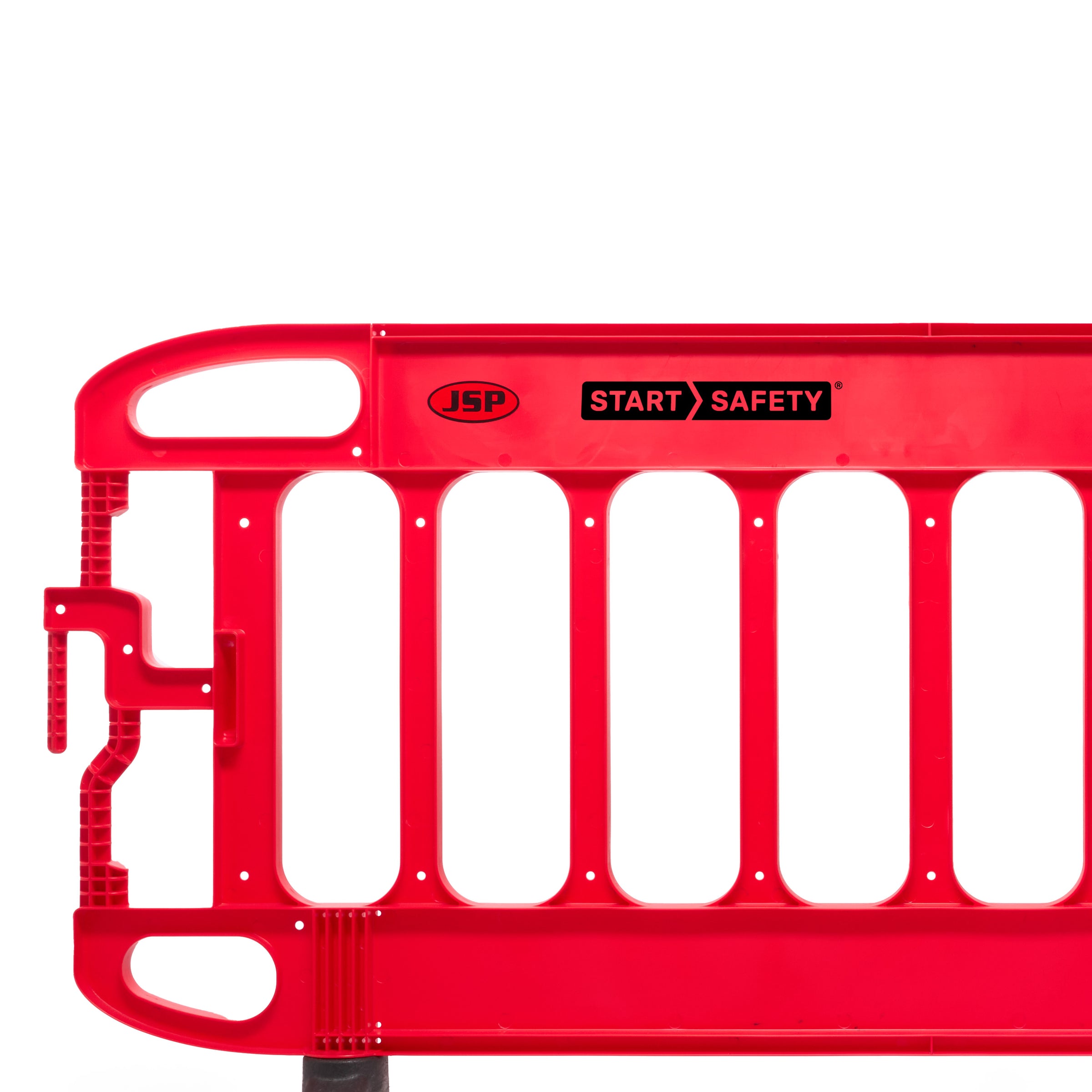 The Navigator PLUS draws many design cues from the JSP Titan barrier, which is renowned for its near indestructibility. The design of the Navigator PLUS barrier allows for quick deployment and eliminates the need for additional clips, instead utilising a hook-and-eye system. This allows the barrier to be positioned both straight in a line, and at a 90-degree angle. The eye section on the receiving end of the barrier allows a third barrier to be placed perpendicular to the first, forming a very durable T-section that enhances wind resistance and braces the entire installation.
