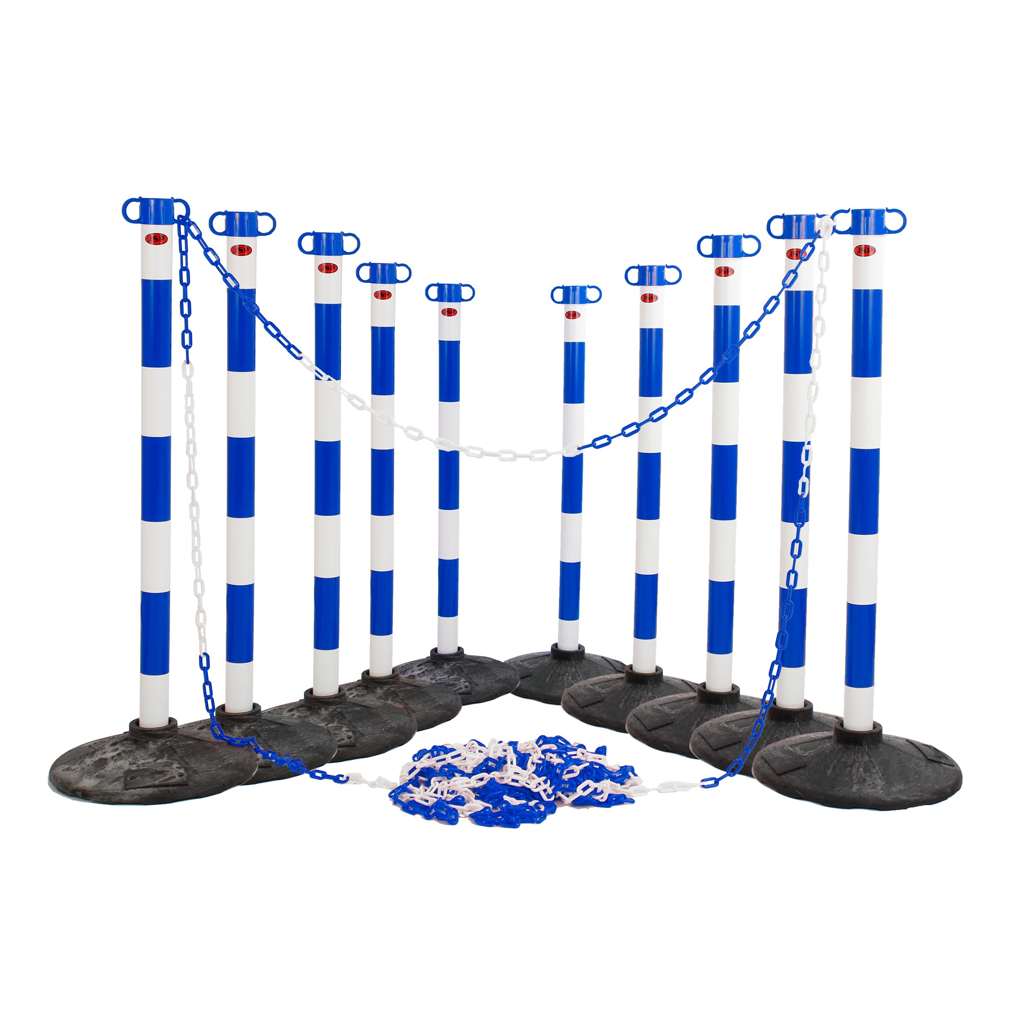 JSP Post And Chain Barrier Kit - Multiple Colours (Blue & White / 10 Post - 25m Chain)