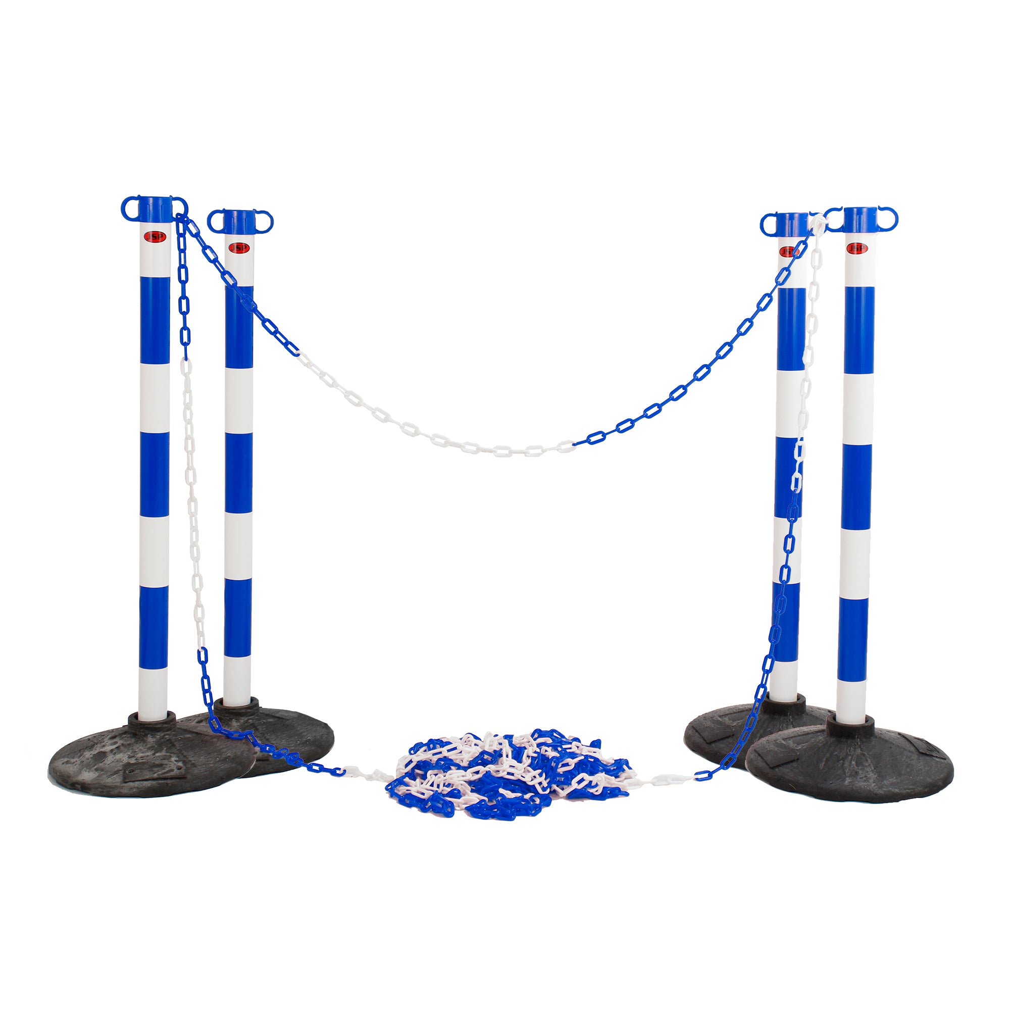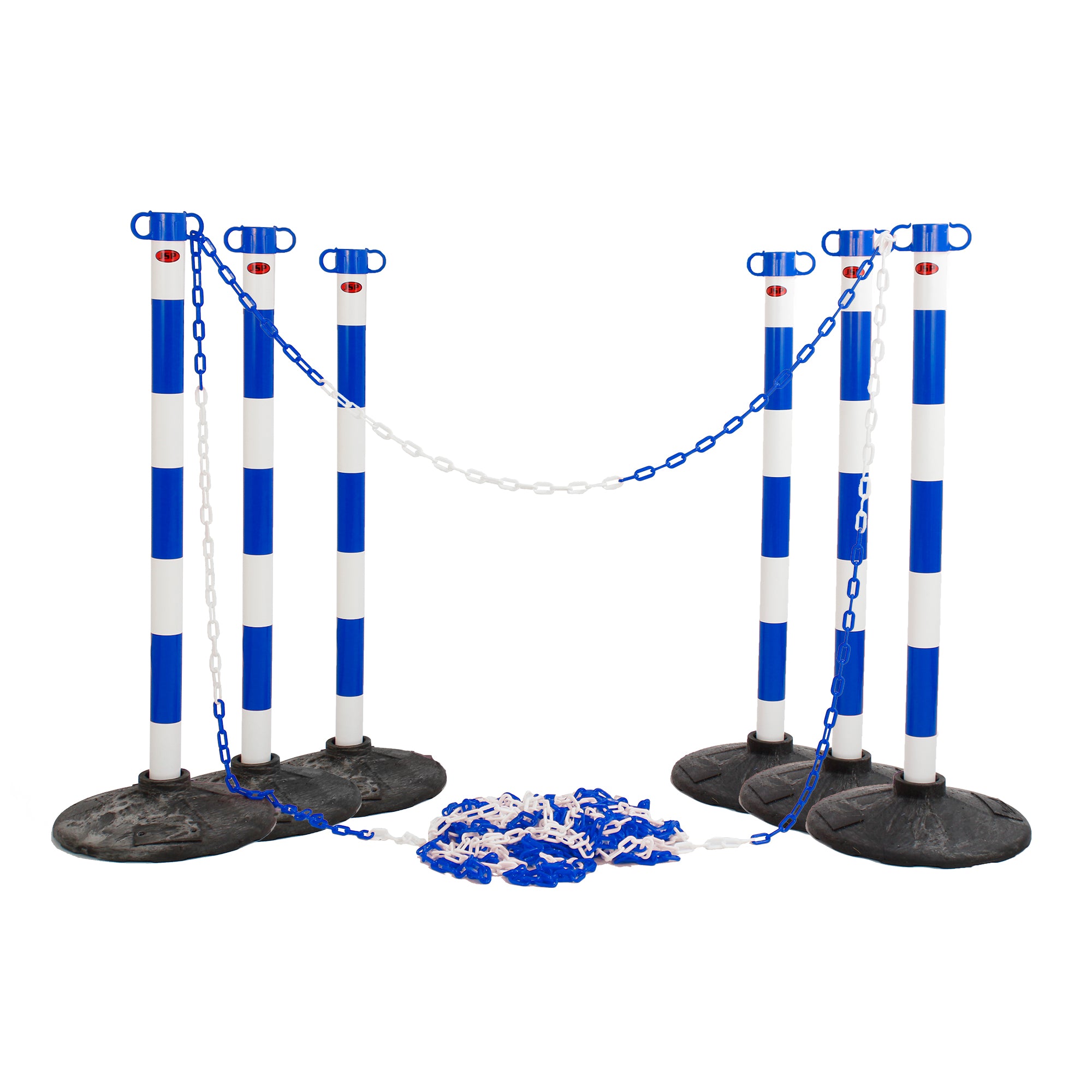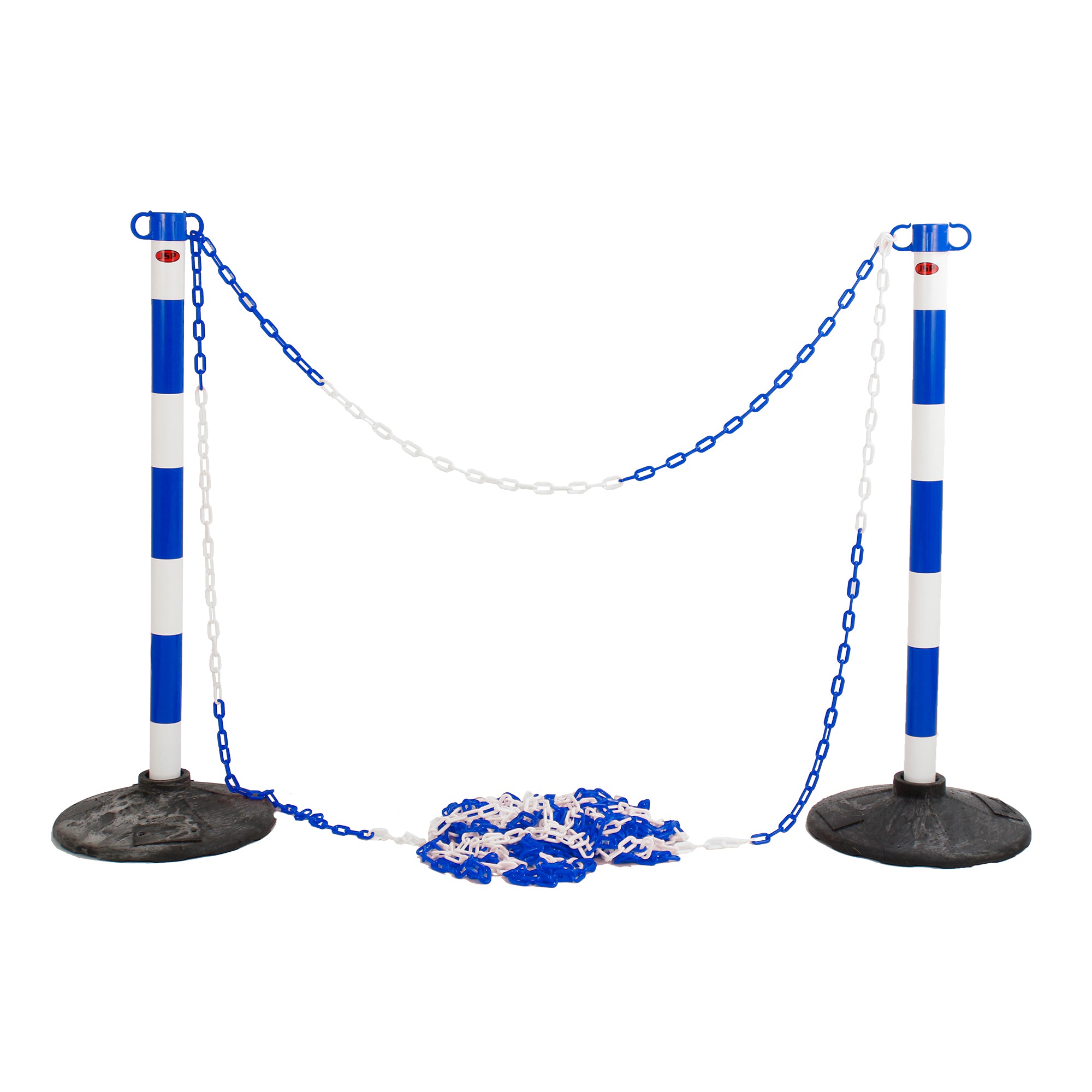JSP Post And Chain Barrier Kit - Multiple Colours (Blue & White / 6 Post - 25m Chain)