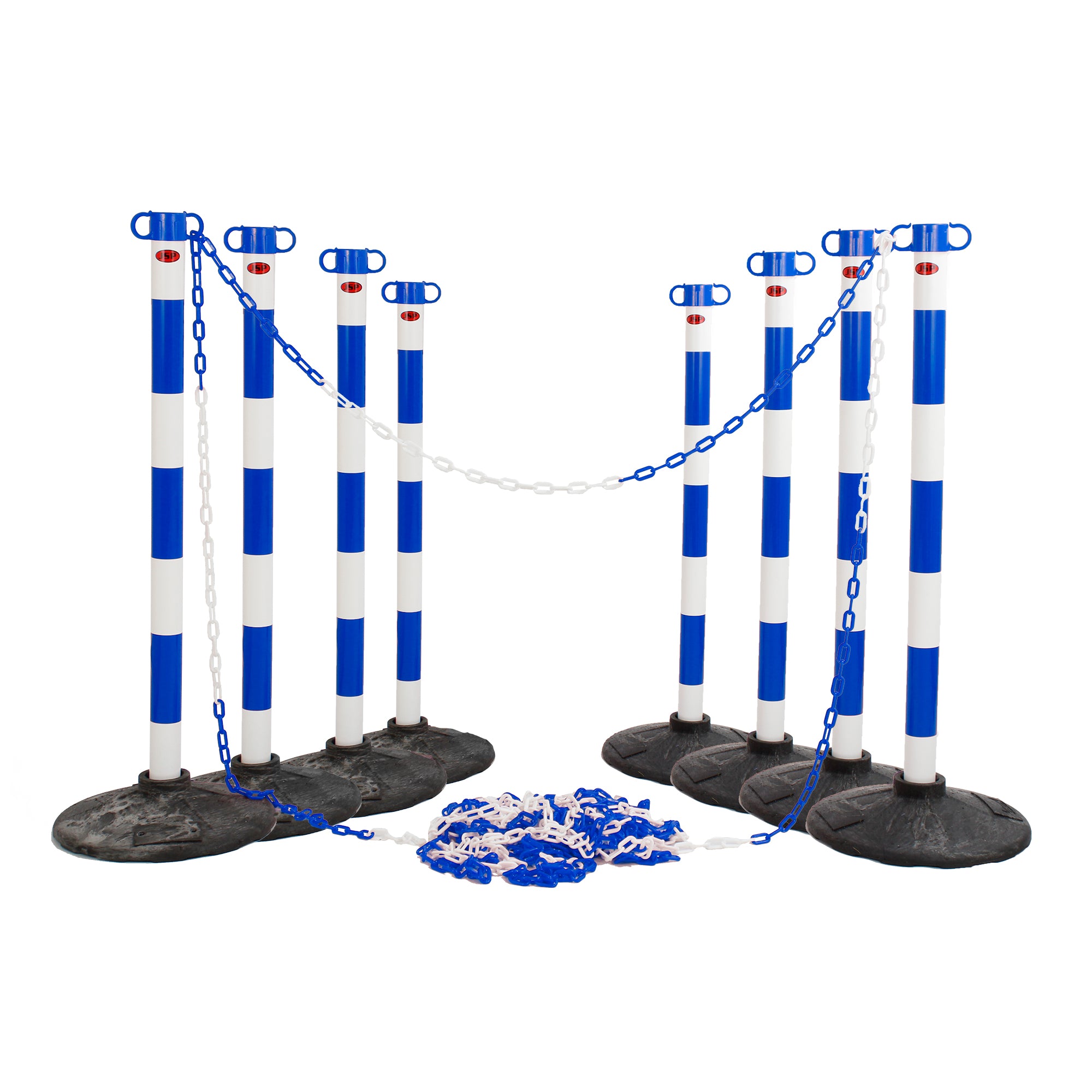 JSP Post And Chain Barrier Kit - Multiple Colours (Blue & White / 8 Post - 25m Chain)