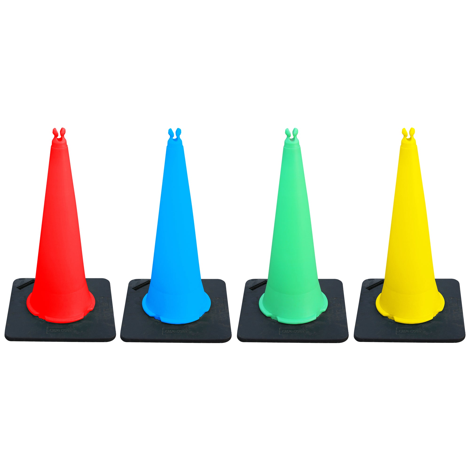 The quad cone does not come fitted with a reflective sleeve, although these are available separately. Alternative uses for the Quad cone include traffic management at events, as well as its application in theme parks and airports to create queues, traffic management systems, and more.